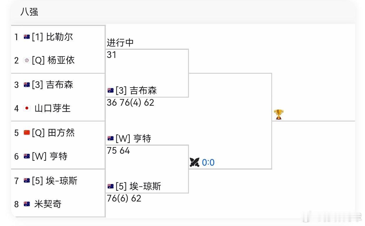 W75西尼1/4决赛田方然57,46不敌东道主亨特,无缘半决赛。本周收获16分。
