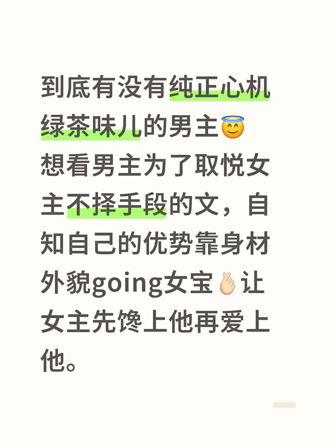 想看男主为了取悦女主不择手段的文,自知自己的优势靠身材外貌going女宝🫰🏻让女主先馋上他再爱上他,哈哈谁懂我的XP。