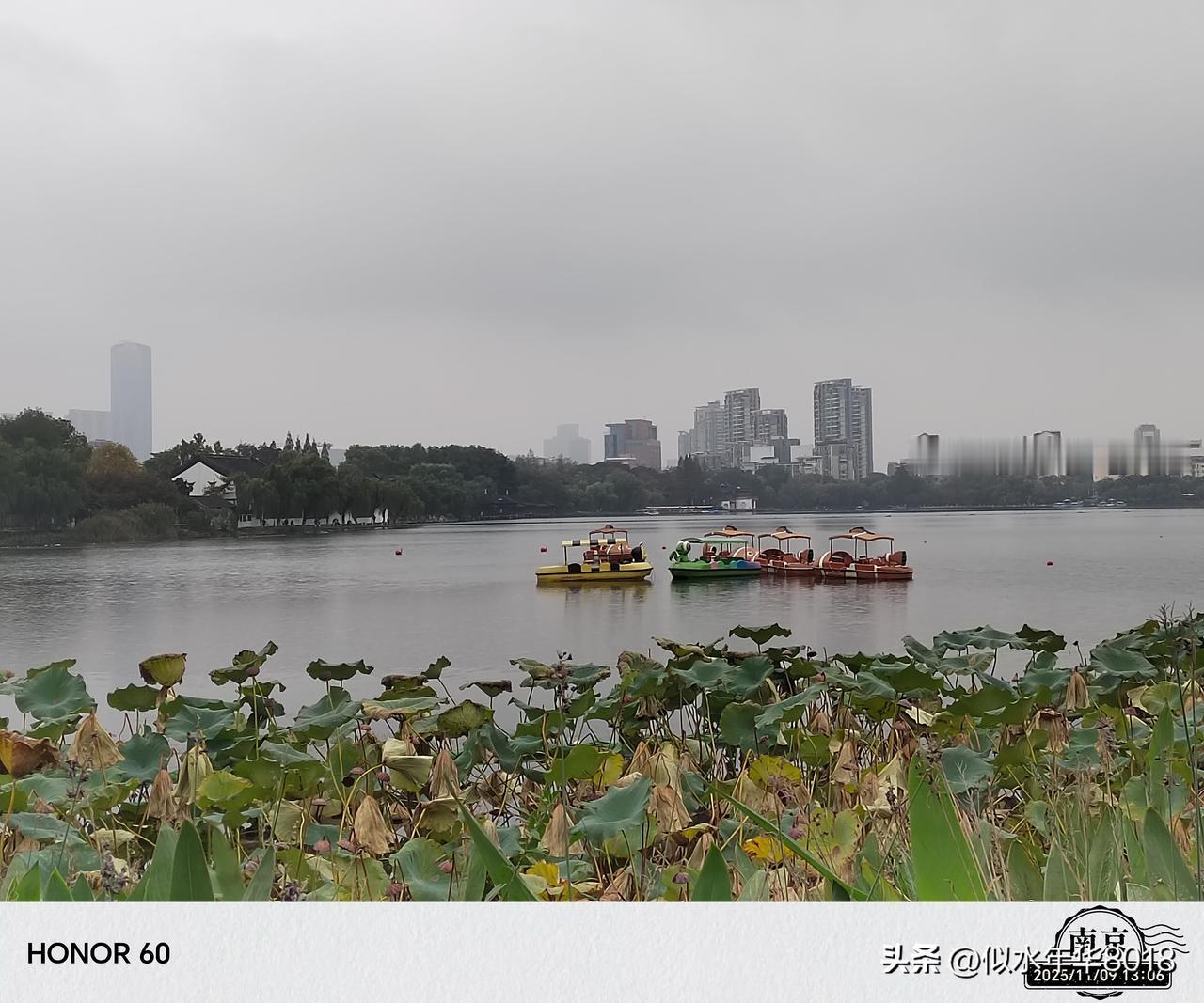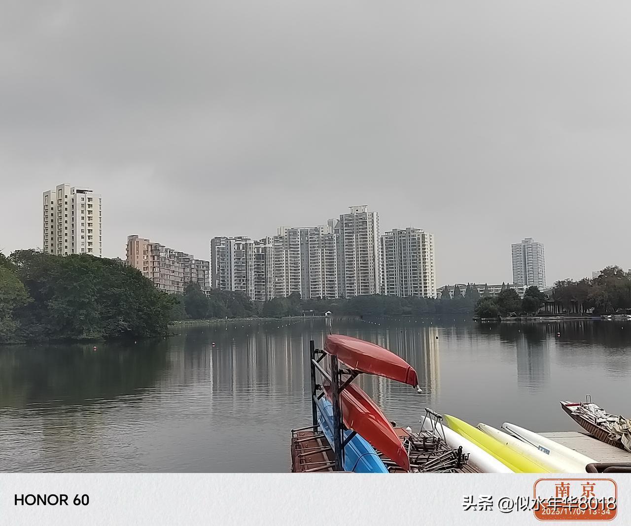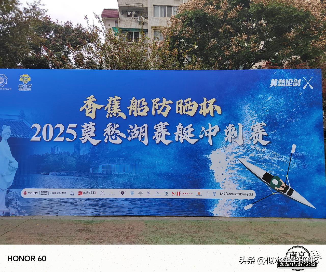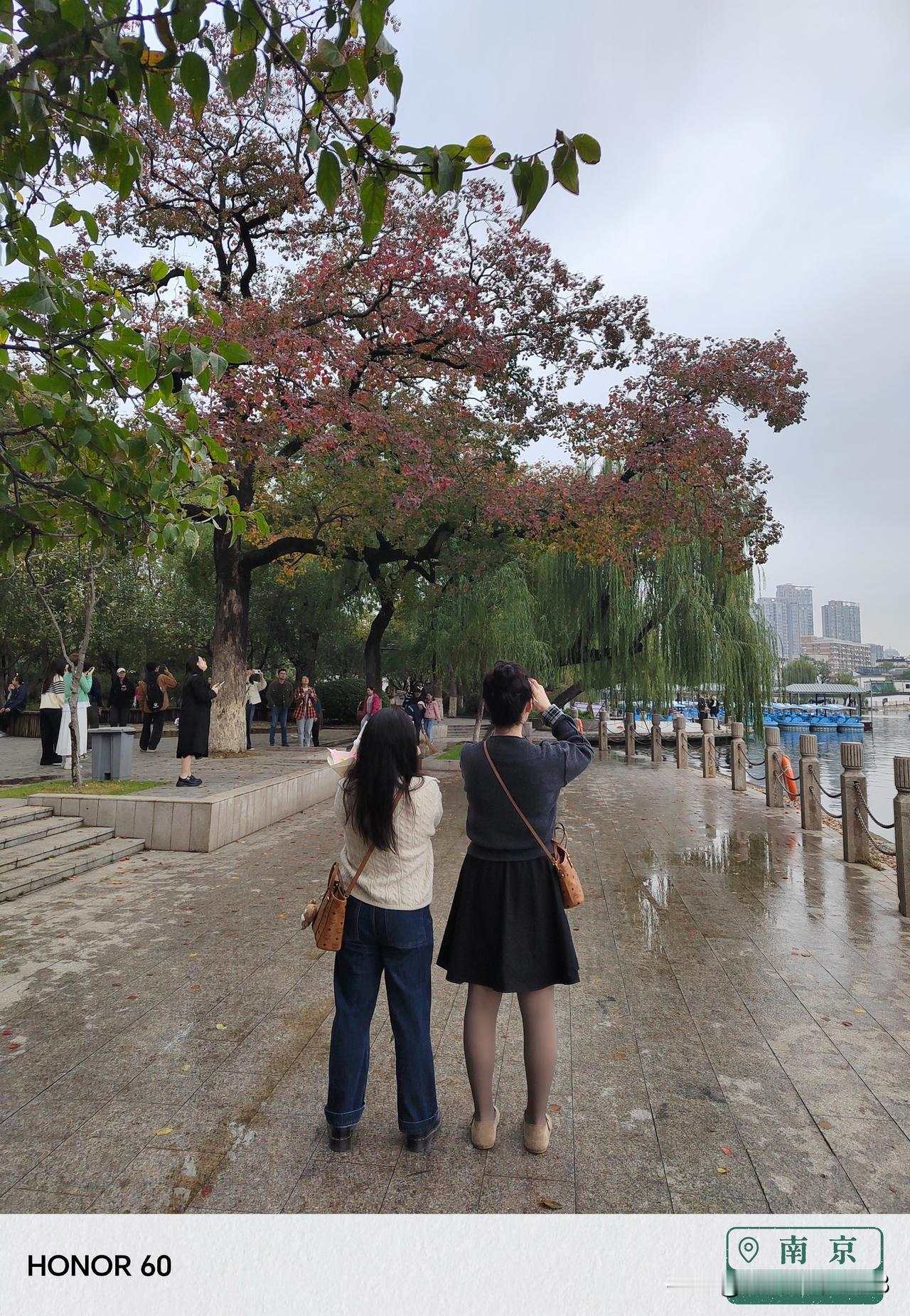 秋日胜景:南京莫愁湖公园里的超美乌桕树 今天是2025年11月9日,南京市天气:阴,气温:11—17℃。午饭后,我们前往南京莫愁湖公园,从水西门大街的南门进入园内,沿着湖边的游步道由东向北边走边看,在鸢尾园附近有一棵网红乌桕树吸引大家的目光,只见树叶呈现出五彩斑斓的色彩,众多游人纷纷在此打卡拍照。沿着环湖路前行,湖里的白天鹅、黑天鹅、凤头鸭,引得众多行人驻足观赏、投喂拍照。这两天公园里正在举办香蕉船防晒杯2025莫愁湖赛艇冲刺赛。