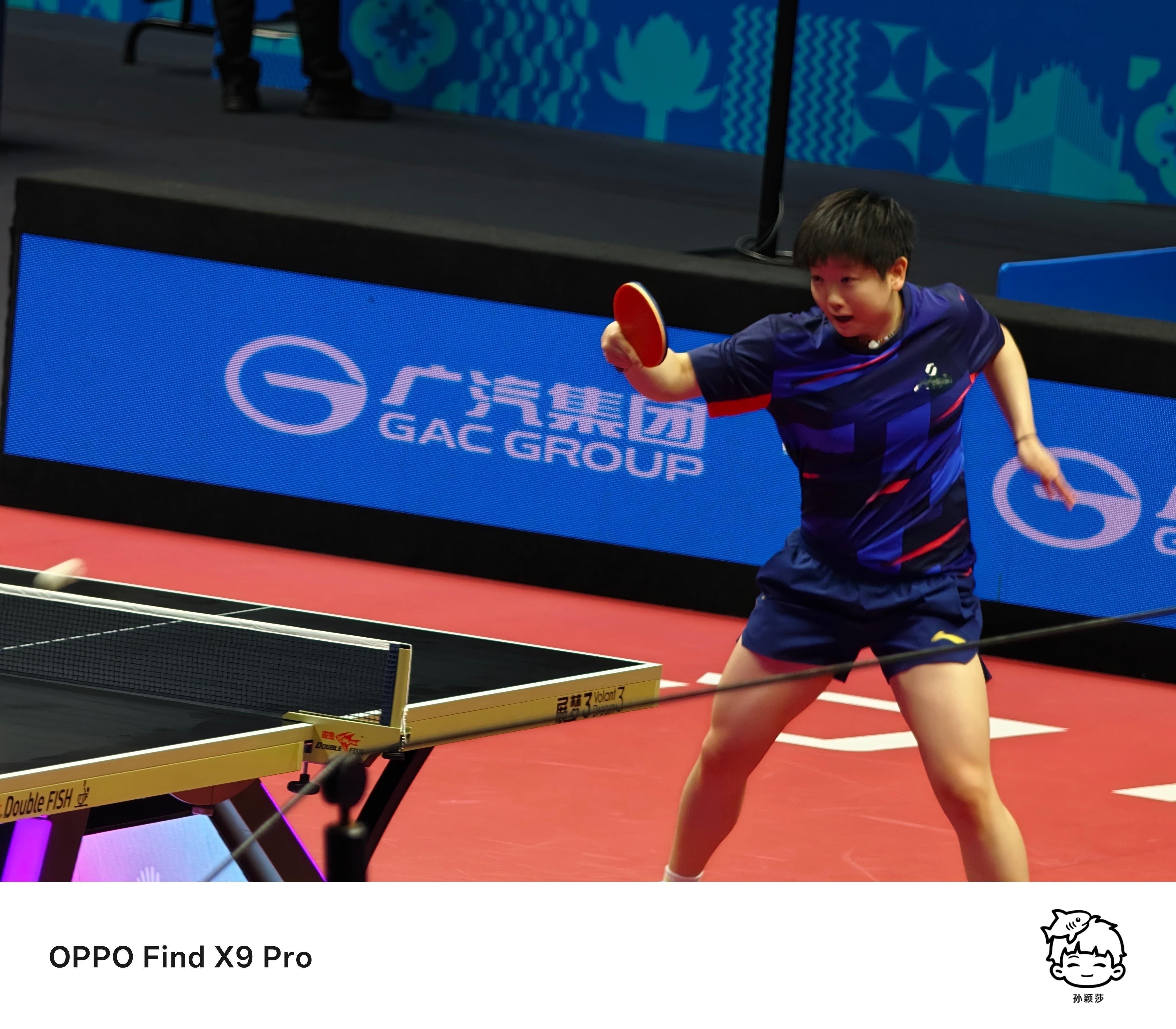 全运赛场上, 的每一次挥拍都像系列的超清影像——精准捕捉,瞬间封神!无论是刁钻落点还是极限反拉,她的动作快如闪电,而OPPO Find X9的超清画质与超凡抓拍,连莎莎击球的锐利眼神都能清晰定格!用,就像拥有孙颖莎的同款预判——高帧率流畅屏+AI智能防抖,高速对攻不拖影、不抖动,记录每一分精彩。