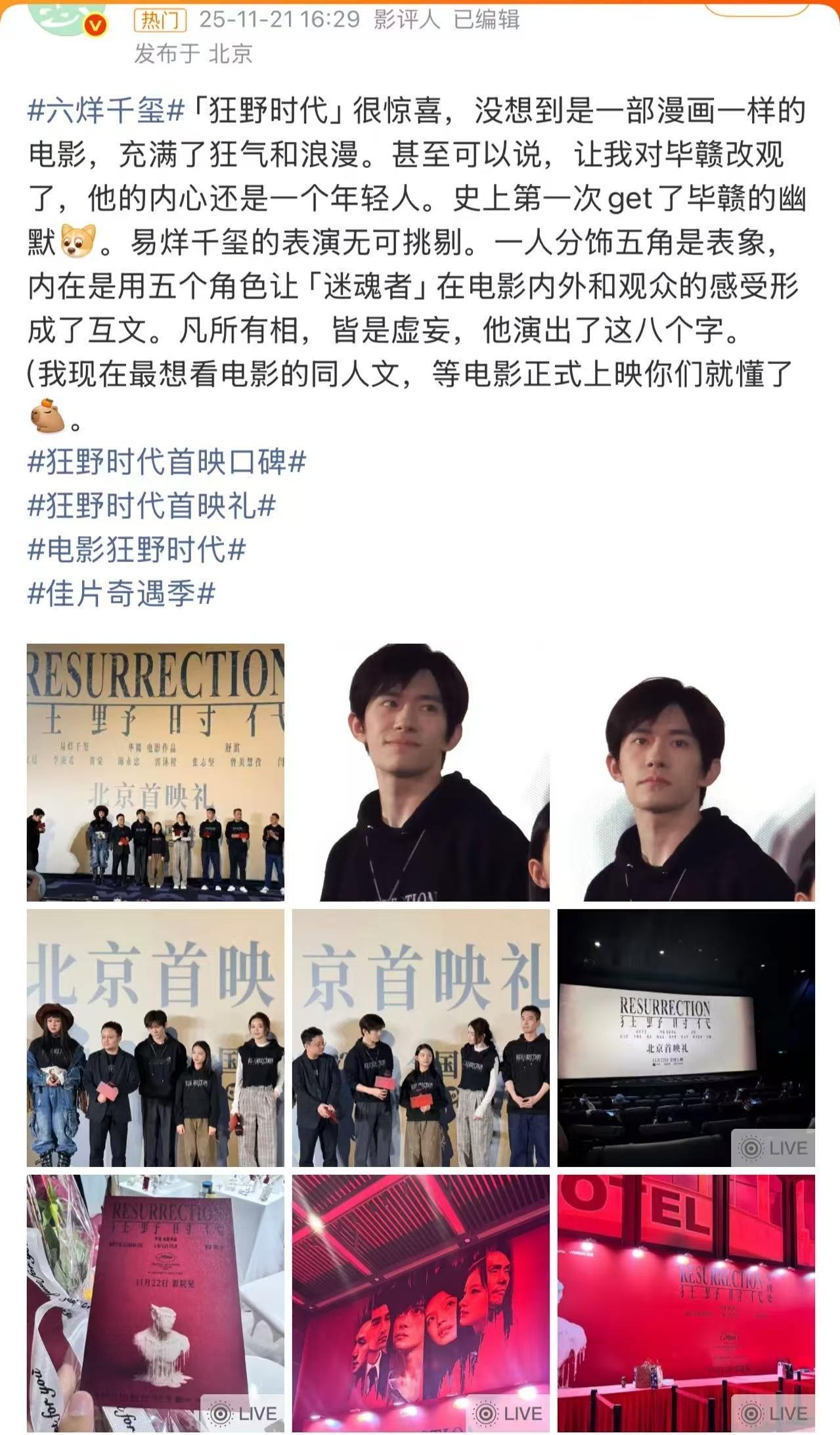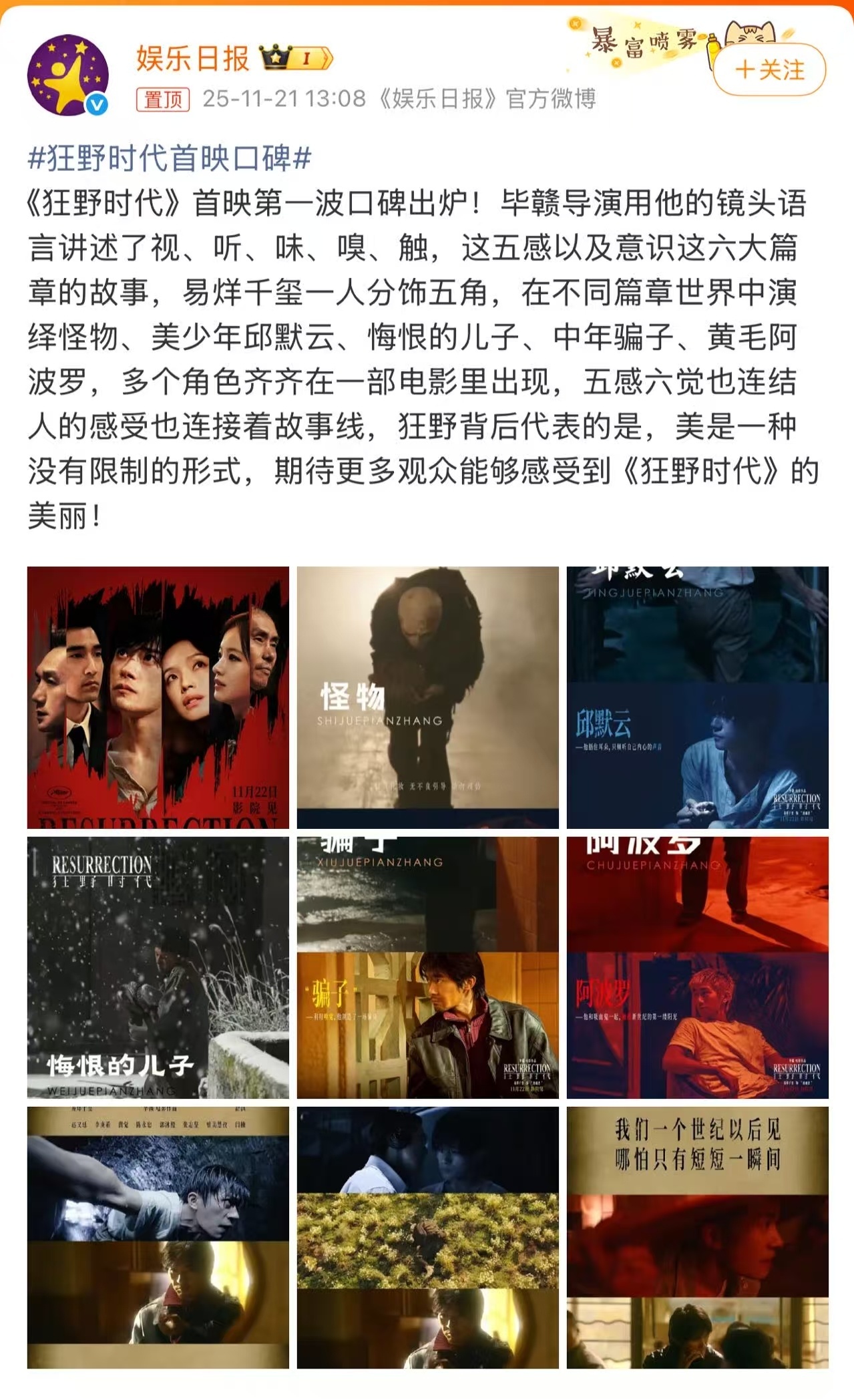 易烊千玺的演技在《狂野时代》里完成量子跃迁!五个角色五套生命密码,他游走其间如鱼得水。当邱默云的清冷与小和尚的执念在脑中同时浮现,才懂什么叫“一人成团”的表演实力。