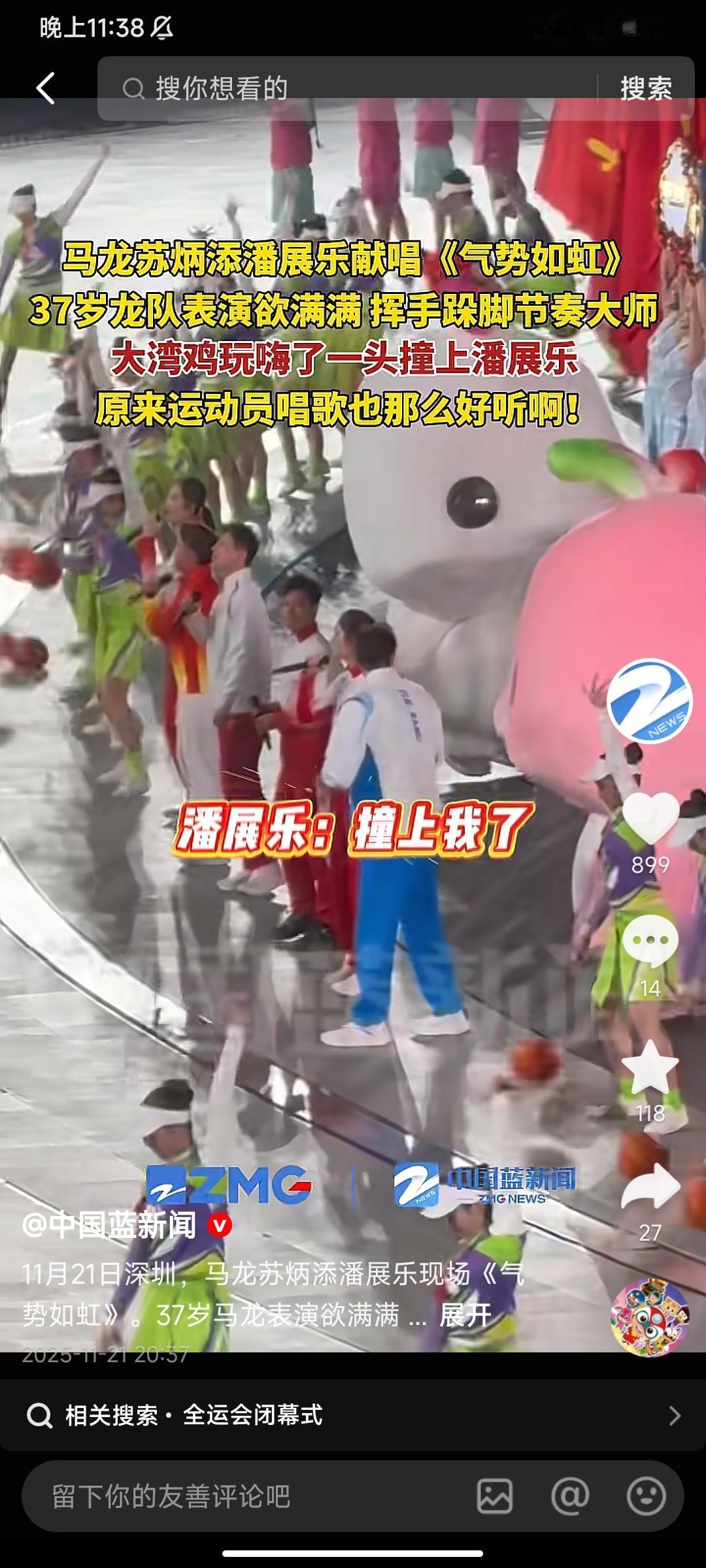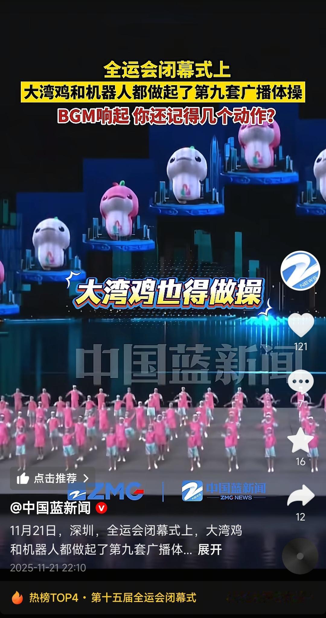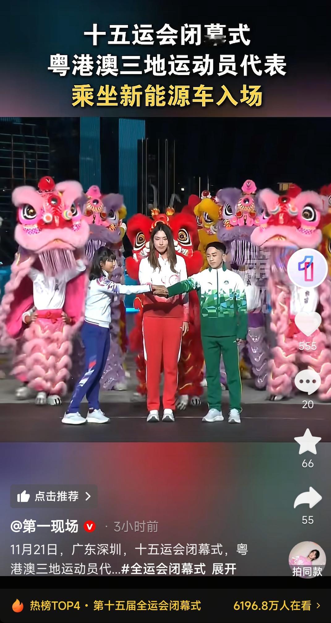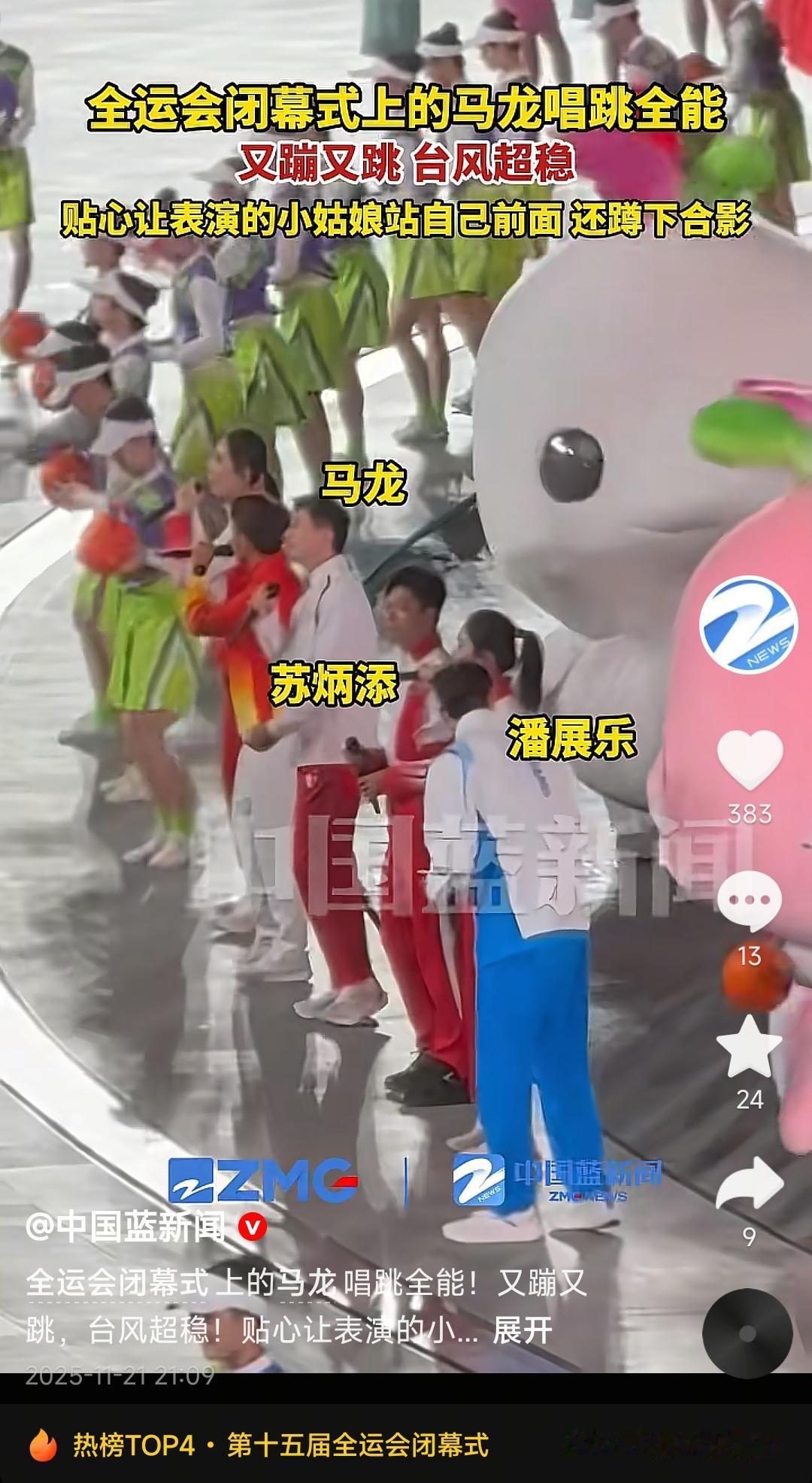帅炸了!这届全运会闭幕式,让大家看到了不一样的马龙 11月21日,第十五届全运会闭幕式在深圳落下帷幕,这届全运会的几个亮点,让网友直呼帅炸了。 第一点,粤港澳运动员直接被跑车送入场,这是全运会史上第一次。 广东网球运动员王欣瑜,香港公路自行车运动员李思颖,澳门空手道运动员郭建恒,三人亮相后手握手一幕,全网共情。 第二点,这届全运会闭幕式可以说是科技秀,机器人上场,不仅跳广播体操,也现场为马龙唱歌陪跳,非常活跃。 第三点,马龙苏炳添潘展乐现场唱气势如虹,吉祥物大湾鸡唱跳火了。 37岁马龙,36岁苏炳添,最后一次参加全运会,他们在现场唱跳,台风非常活跃。 苏炳添挂靴了,直接官宣退役,马龙也在此次全运会实现全满贯,也即将退役。祝福他们。
