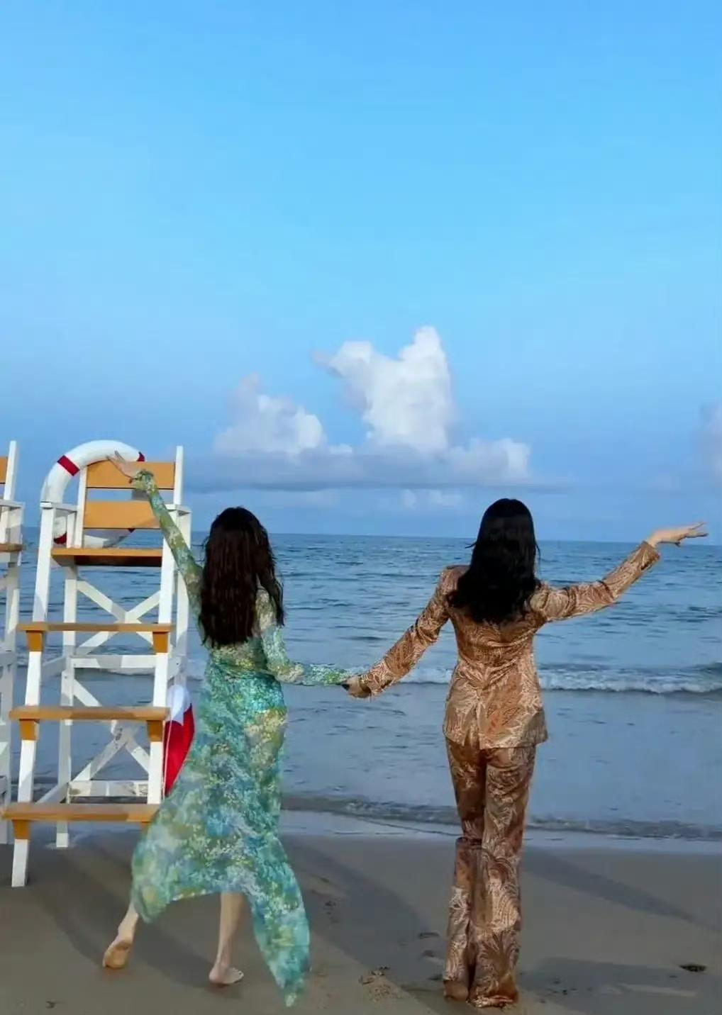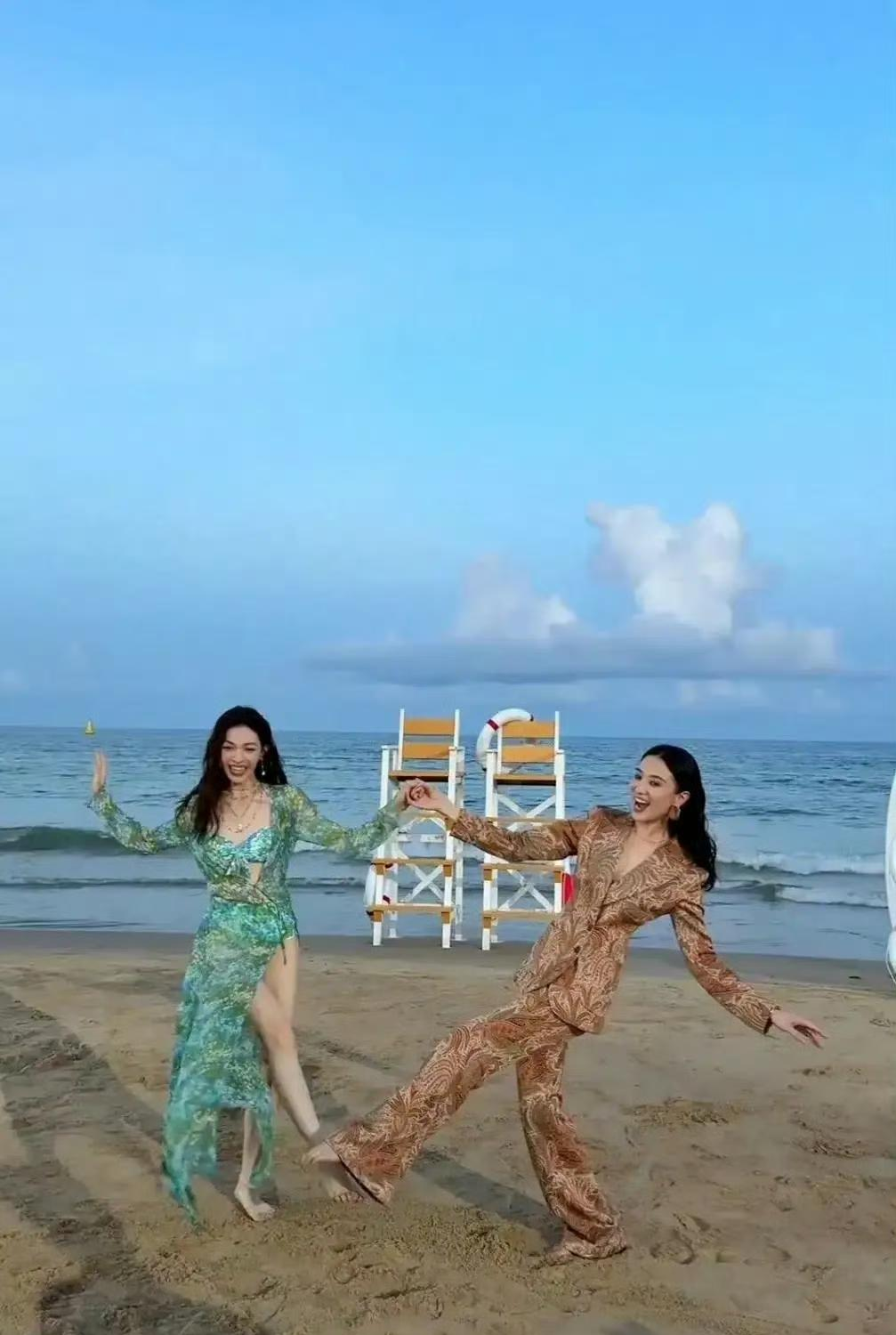 三亚沙滩上,宋佳和钟楚曦这对女神级搭档,直接把度假拍成了时尚大片现场。...