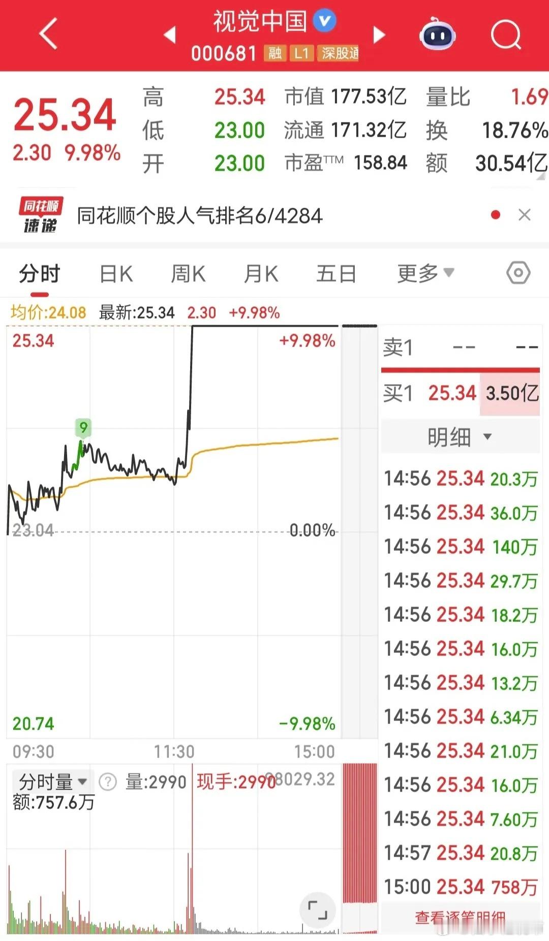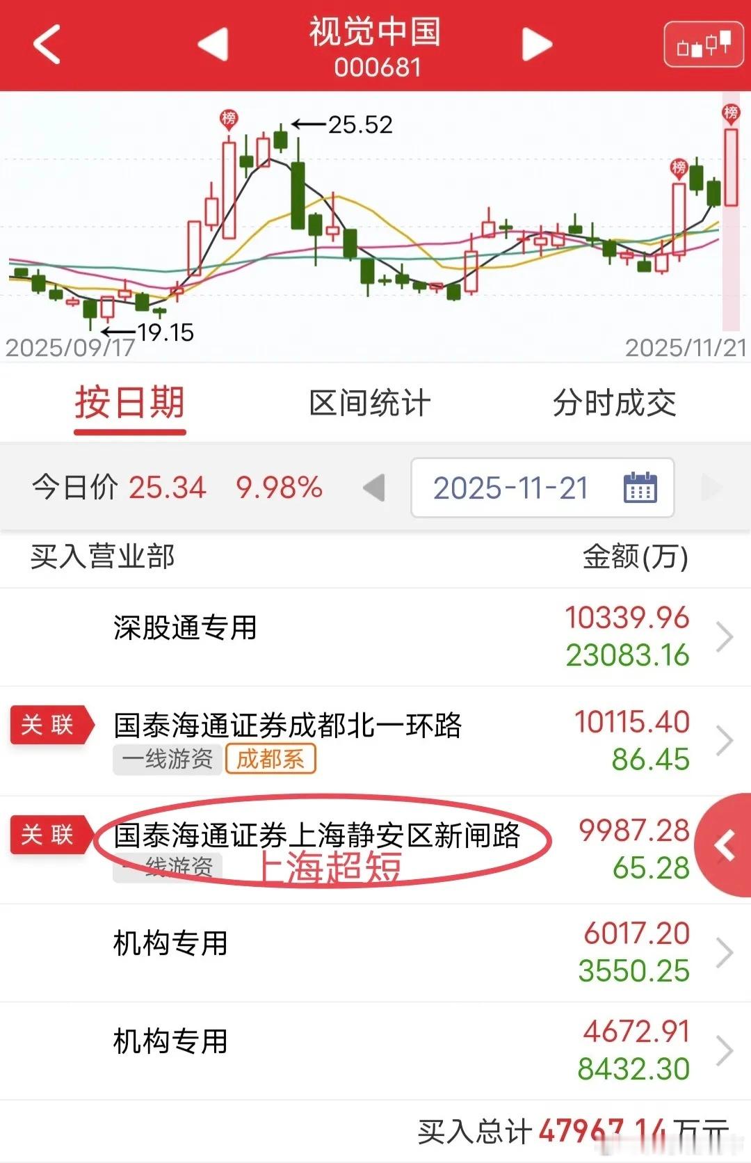 成都系爆买1个亿:今天视觉中国开盘震荡,盘中快速拉升涨停。盘后龙虎榜显示,成都系爆买1个亿,上海超短助攻9900万。两个大佬都这么大手笔,看来都看好这支票啊。