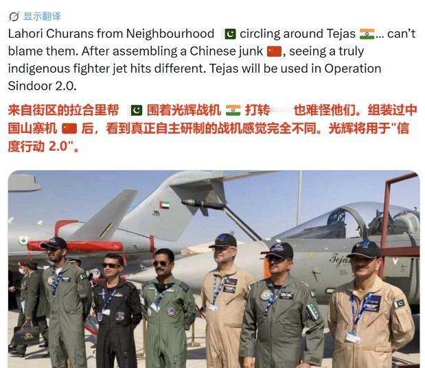漏油了还进行飞行表演,不坠机才怪,而且还是当着那么多观众面前,更讽刺的是,印度空军飞行员,前一天还嘲笑巴基斯坦空军枭龙战斗机,结果第二天,印度光辉战斗机,连同飞行员一起升天了。 没过多久,印度空军的声明就传了出来,确认飞行员重伤不治,还说会成立调查委员会查原因。 熟悉航空展的人都知道,迪拜航展是中东最大的航空盛会,今年这届更是号称有1500多家参展商、200多架飞机,连俄罗斯“勇士”这样的知名表演队都来了。 偏偏在这样的场合,印度寄予厚望的“光辉”战机出了意外,而且还是航展的最后一天,原本是收尾亮相的关键节点。 这架坠毁的战机不是什么临时拼凑的试验机,是印度花了几十年打磨的“国产骄傲”。 上世纪80年代初,印度就定下了研制这款轻型战斗机的计划,想靠它替换老旧的俄制战机,撑起空军现代化的门面。 从1983年政府正式批准立项,到2016年终于列装部队,前前后后耗了33年。 研发过程中,发动机换过方案,设计改了又改,连核心的发动机最终还是用了美国通用电气的产品,没能实现完全的国产化。 即便如此,印度军方对它一直很有信心,今年9月还刚签了97架的采购合同,计划2027年开始交付。 这已经不是“光辉”战机第一次出问题了。 去年3月,在印度拉贾斯坦邦的一次三军演习中,一架同型号战机训练时发生故障,飞行员跳伞逃生,战机坠毁后炸起了火球。 那次是服役后的首次坠毁,当时印度军方解释是训练中的突发机械故障,没影响后续的采购计划。 没想到才过了一年多,就在国际航展上再次坠毁,而且这次是当着全球航空界的面,关注度比上次高了不止一个量级。 有意思的是,就在这起事故前几天,社交媒体上已经闹过一轮关于“光辉”战机的风波。 航展开幕没两天,一段视频在网上流传,画面里停在停机坪的一架“光辉”机身下方滴着透明液体,地勤人员还在下面放了纸袋接着。 很快就有声音说这是战机漏油,甚至出现了“用购物袋补漏”的段子。 结果印度官方赶紧出来澄清,说那不是油,是战机环境控制系统的冷凝水,迪拜30多度的气温下,系统降温时产生冷凝水很正常,还指责这些说法是故意抹黑战机的可靠性。 现在没法确定坠毁的这架是不是当时被传漏油的那架,但这种事前争议让事故更受关注。 有航空爱好者翻出旧账,发现2023年的迪拜航展上,“光辉”的主表演机和备份机就接连出故障,最后根本没做成飞行表演。 今年本来是卷土重来想证明自己,没想到以坠毁收场。 事故发生后半小时,航展的飞行表演就恢复了,俄罗斯“勇士”表演队接着在空中做动作,地面的救援人员还在处理残骸,这种反差让现场不少人议论纷纷。 现场照片里,还有一辆挂着印度国旗的外交牌照SUV停在残骸附近,能看出印度方面对这起事故的重视。 毕竟除了人员伤亡,更重要的是“光辉”战机的出口前景可能受影响。 这些年印度一直想把这款战机推向国际市场,迪拜航展就是重要的展示窗口,之前还向多个国家推销过。 这次坠毁后,不少潜在买家可能会重新评估它的可靠性。