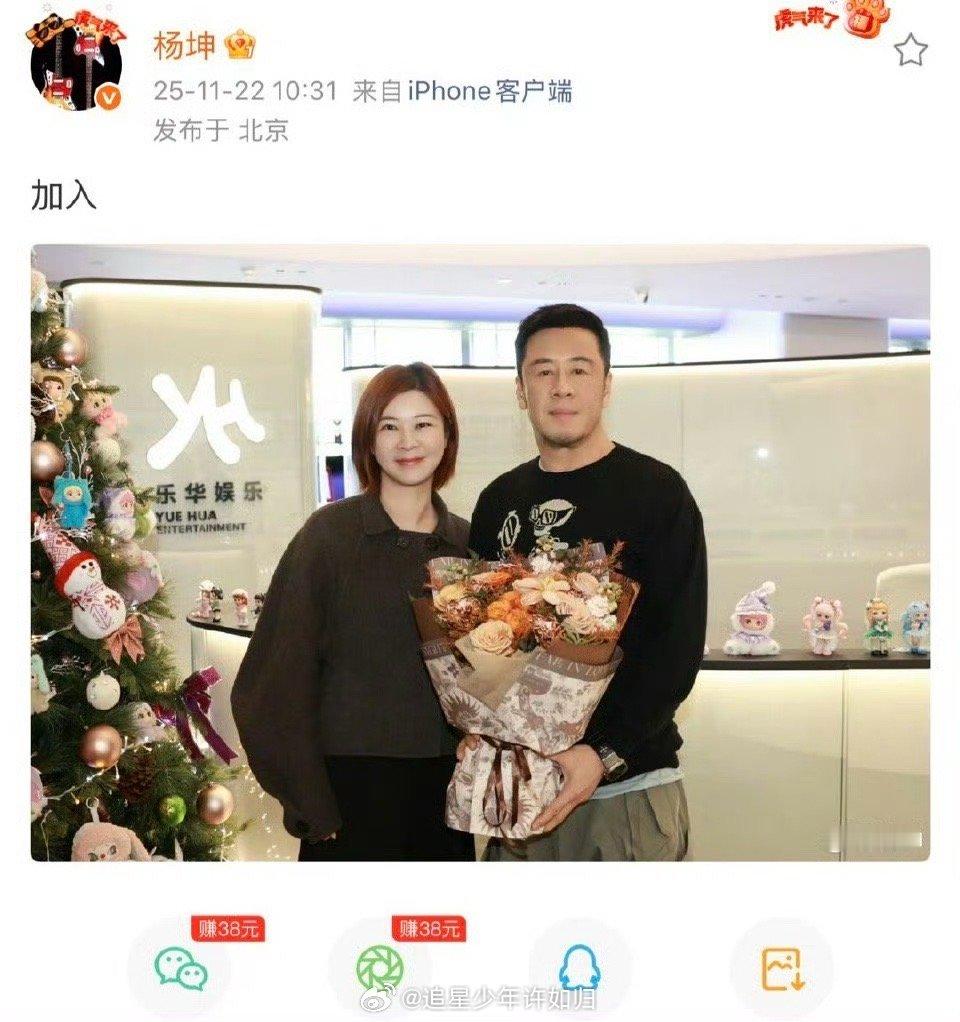 震撼!杨坤正式加入乐华家族,晒出与杜华合照官宣新身份!从实力唱将到乐华新成员,这个组合太让人期待了,不知道接下来会带来什么样的音乐作品呢?
