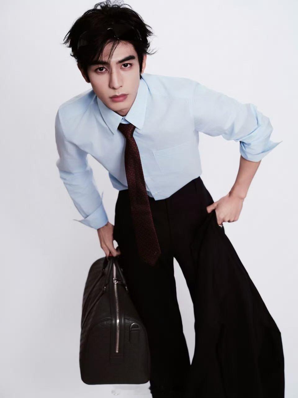 黑色休闲装利落有型,蓝色衬衫点睛之笔!宋威龙将少年清爽与熟男沉稳完美结合,这让人心跳加速的魅力值得反复品味。