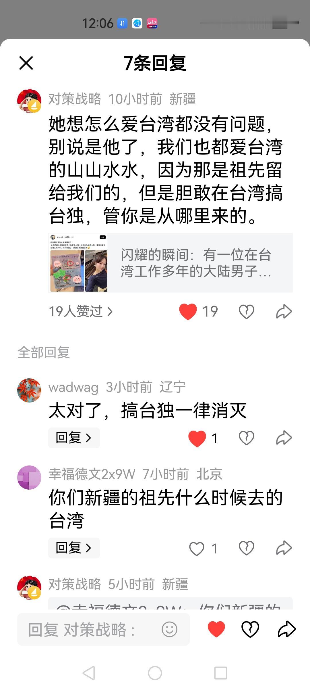我对这个人的评价是,既不懂历史,又不懂地理,更加不懂新疆民族融合的过程。可能在他的心目中,新疆的人民群众离爱国主义很远,他更加不懂什么叫做中华民族的融合,也不知道中华民族的历史源远流长,在这里我继续讲一句相似的话,不是每个台湾同胞都能叫同胞的,比如台独你就不能把他叫同胞,同胞的真正内涵在于我们互相都认可自己中国人的身份。作者是长期写作反台独文章的头条作者经常碰到一类人,他们喜欢在别人的帖子下留下一段话,然后你对他进行批驳的时候,他再也不会出现,实际这帮人是台湾水军,或者是台独同情者。
