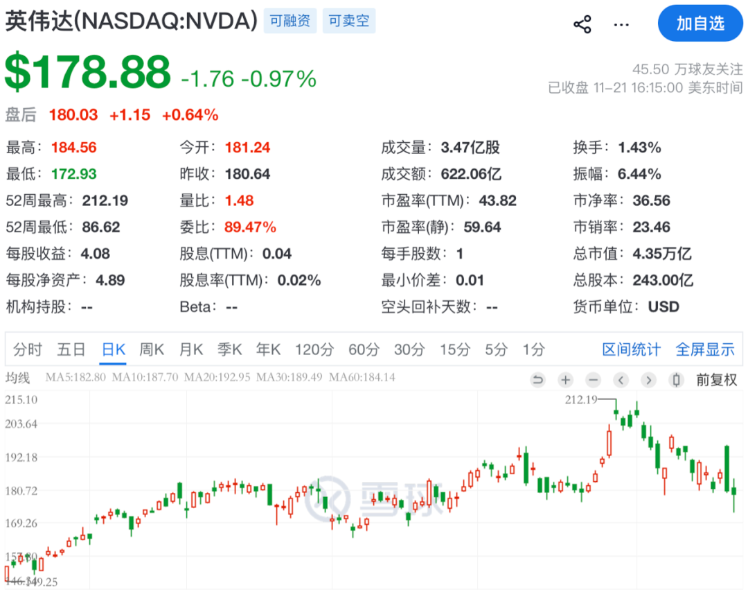 尽管英伟达最新公布的业绩报告大超市场预期,且给出的第四财季业绩指引也超出华尔街一致预期,但市场并不买账,业绩公布后,英伟达股价已连续2个交易日收跌,本周跌幅接近6%。