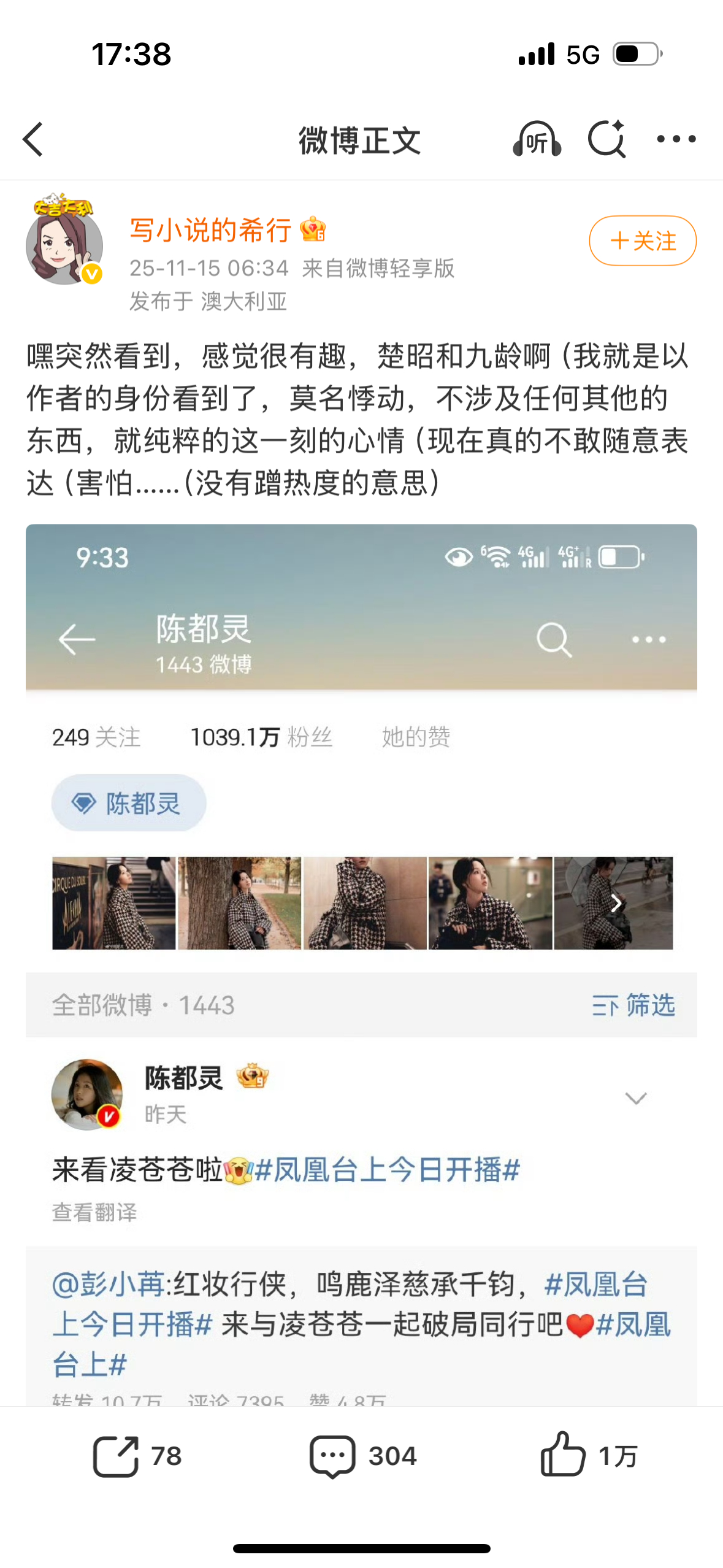 因为凤凰台上原著作者疑是内涵女主没演出对男主的爱(P234)。。。彭小冉发了这