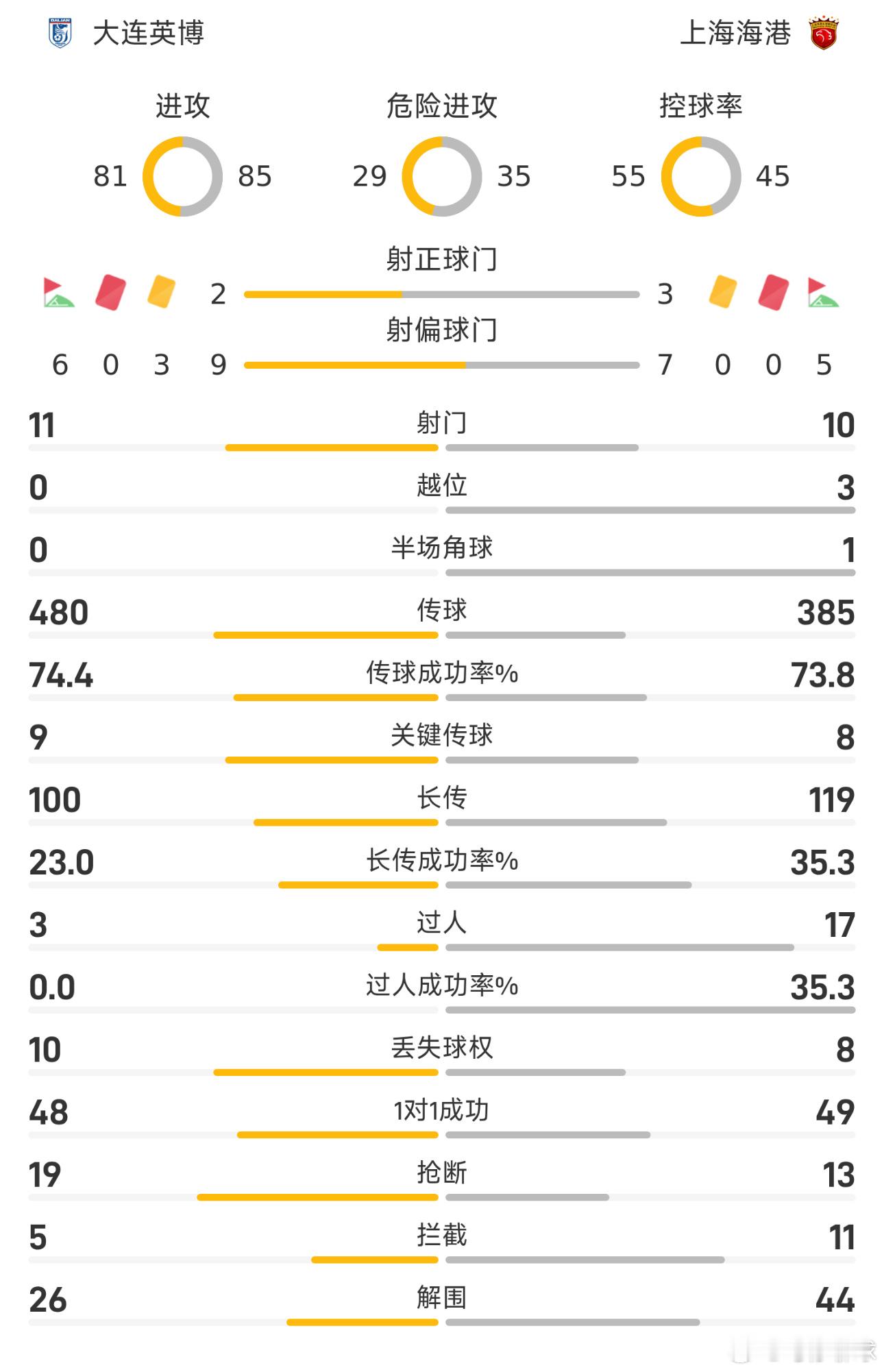 11月22日讯 25赛季中超联赛第30轮,上海海港1-0战胜大连英博。上半场加布里埃尔闪击破门,半场结束前,加布里埃尔破门但因莱昂纳多越位在先被吹。下半场大连英博屡造威胁,阿利米头球攻门击中横梁。最终上海海港客场1-0小胜大连英博,夺得2025赛季中超冠军。球员名单大连英博首发阵容:26-黄子豪、5-晋鹏翔(46’36-毕津浩)、30-温家宝(54’33-曹海清)、2-马马杜、4-阿利米、21-吕鹏(54’40-廖锦涛)、25-佩尼亚(42’16-朱鹏宇)、38-吕焯毅、22-毛伟杰(46’10-拉布亚德)、11-马莱莱、27-杨铭锐大连英博替补阵容:17-隋维杰、1-葛彭、36-毕津浩、33-曹海清、24-彭顺杰、10-拉布亚德、18-刘逸、40-廖锦涛、29-孙铂、8-赵学斌、9-闫鹏、16-朱鹏宇上海海港首发阵容:1-颜骏凌、3-蒋光太、4-王燊超、32-李帅、13-魏震、40-吾米提江、10-维塔尔、21-梅伦多(77’49-李新翔)、22-茹萨、30-加布里埃尔、45-莱昂纳多(89’11-吕文君)上海海港替补阵容:12-陈威、5-张琳芃、23-傅欢、15-明天、29-亚历斯祖、20-杨世元、6-徐新、36-阿布拉汗、47-蒯纪闻、11-吕文君、27-冯劲、49-李新翔