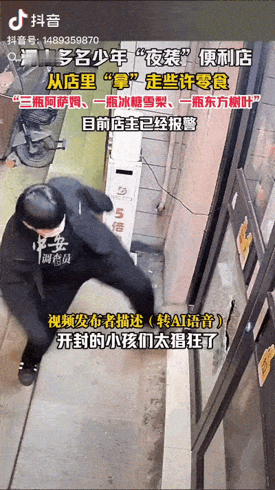 烟也不拿酒也不拿,就拿“三瓶阿萨姆,一瓶冰糖雪梨 ,一瓶东方树叶,一包槟榔”看来是真爱喝。河南多名少年“夜袭”便利店,从店里“拿”走许些零食。开封的小孩们太猖狂了,目前店主已报警。三瓶阿萨姆15元,东方树叶5元,冰糖雪梨3元,23元总计,电费都不够,拿点东西的钱还不够赔玻璃的呢,这都不好立案啊,最多也只能抓着教育。