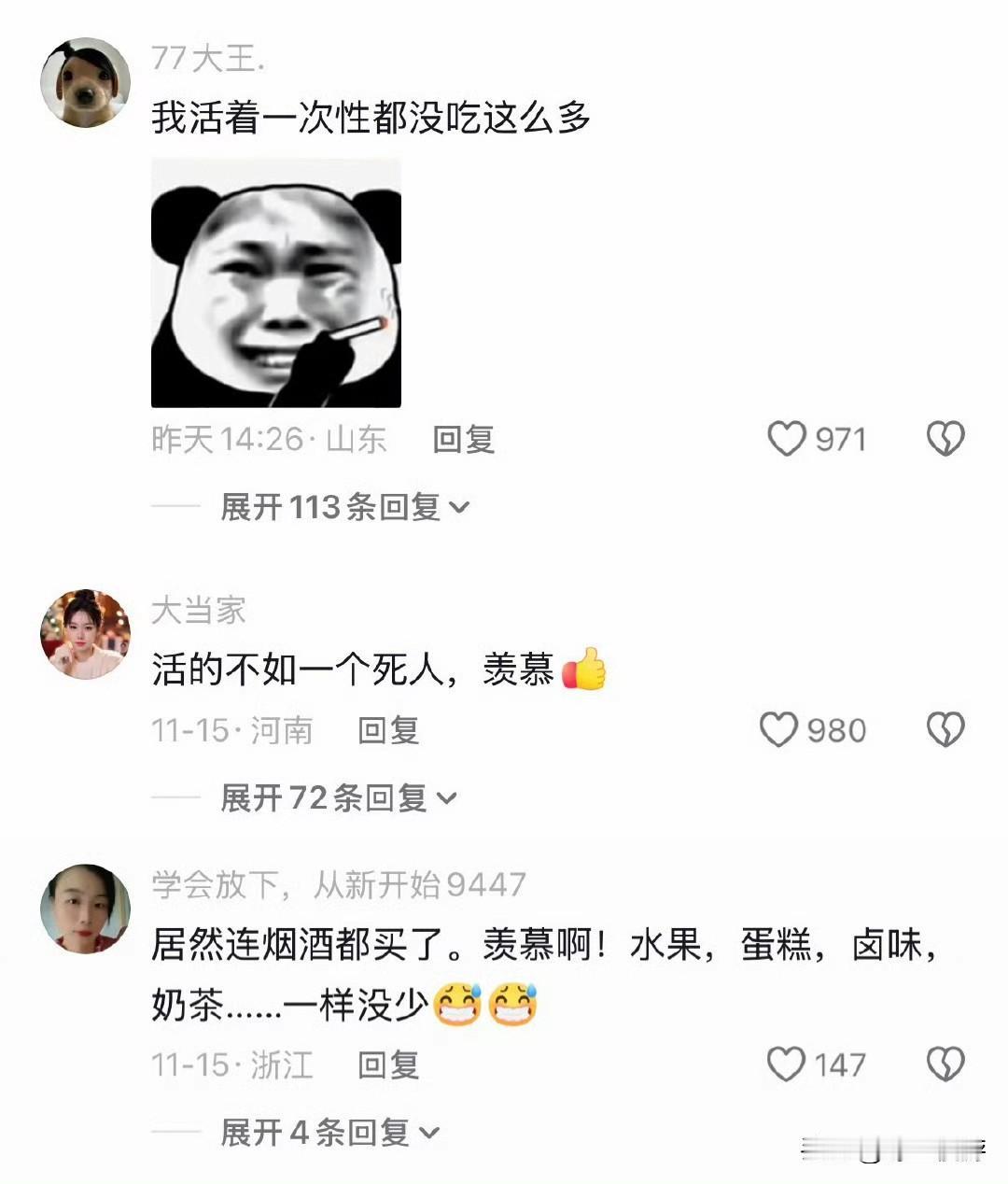真把我看得鼻酸了,也是第一次见上坟拿这么多食物的,生前得是多么相爱的两个人啊[流泪]