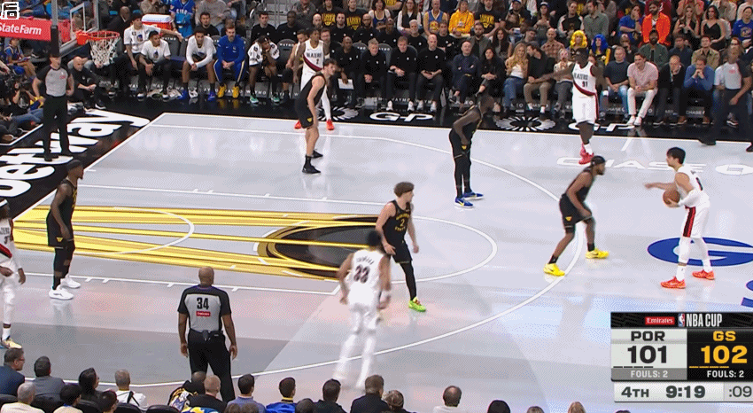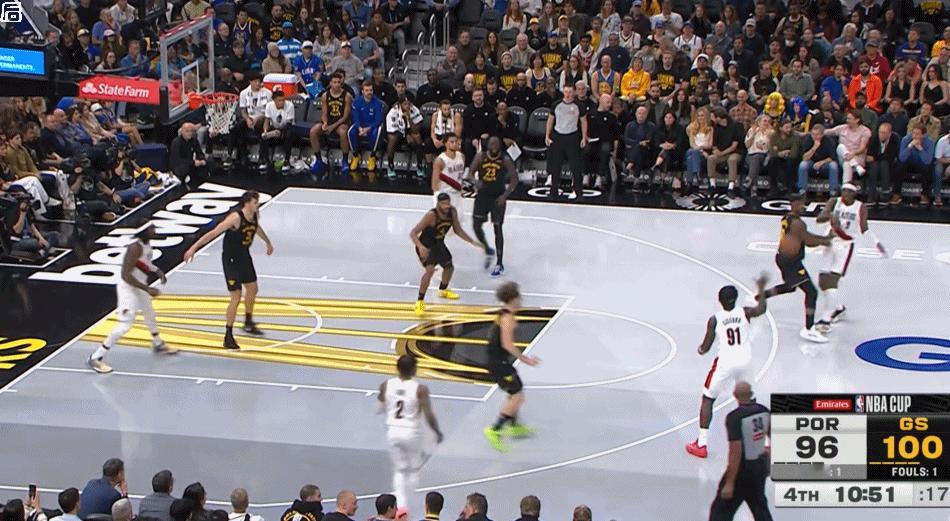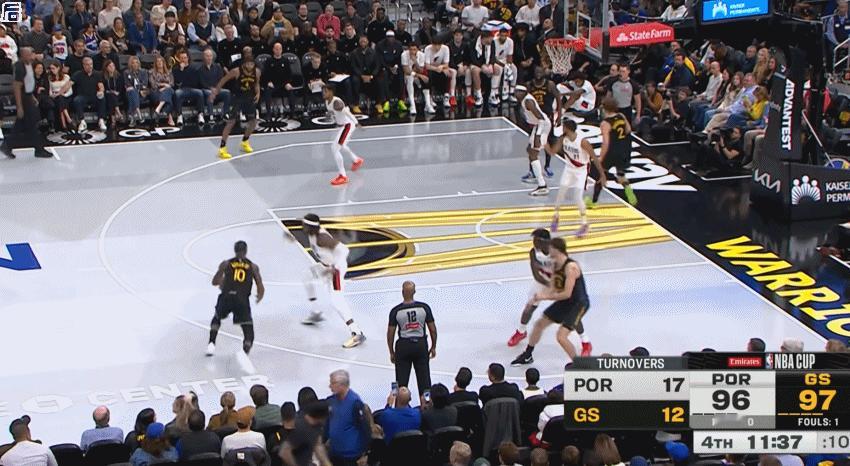 【第四节】图1.本赛季勇士第一次失误比对手少却没赢。这场比赛勇士的失误控制做得确实不错,库追巴都有大量拒绝冒险传球而错失机会的场面。但还是有些失误匪夷所思。姑且还是认可这份努力吧。图2.唉。图3.两个护筐手,传空接哪还那么容易?图4.穆迪这种轮转表现,被喷成什么样都不为过。图5.想起了打马刺那个快攻,被福克斯面断那个。图6.穆迪执行策略放左手,但这球的关键其实是波杰,他没有刷卡,因为卡马拉前面惩罚放空的效果太好了,波杰不敢离他太远,这导致阿夫迪亚一马平川地加速,穆迪横移完全暴露,波斯特尽力了,可还是下压了。图7.晃开一个不意味着就可以出手了。面对开拓者三分三连击(西索科、卡马拉、乐福),勇士回应的是三连铁。投篮随机性,是这样的。图8.又一次,走掩护另一侧,骗过防守人。阿夫迪亚真的厉害。图9.连西索科都可以直接“逼”出换防的话,还不如一开始就库里去对位、解放巴特勒底角协防好了。这点名也太没有成本了,勇士真的合练过防守吗?存疑。图10.这球需要协防吗?第四节的波斯特,投不进空位,防守也站不住,单中锋确实还不行。图11.看到持球人被夹击,上提接应缩短传球距离,当然是好的。看到传篮下了,第一时间往底角去接应,缩短传球距离、拉开防守人的回位距离,这是射手的好习惯。穆迪没有。图12.卡马拉的身体协调性、反应速度和连续起跳能力展示。其实上半场已经有过一次了,被穆迪盖掉那个上篮,立刻自己抢回来上进。顺便,卡马拉的投射威胁已经大到库里会去防接球了——对,又是防接球,又是被反跑惩罚,嗯,这场到底多少次了。*本场是过去三个赛季勇士第100次打(官方定义的)关键球。算上这场,胜率:52%。图13.本该是穆迪的防守高光。图14.追梦破绕前。图15.为什么要防阿夫迪亚右手。最后两次关键防守已经发过了:【第一节】【第二节】【第三节】防守出了大问题,我很少能这么明确地怀疑“没合练过防守”这件事。两个内线很有必要,可惜霍福德受伤了,还能不能做到这一点我很怀疑——如果不得不用TJD,那我希望上斯宾塞多一些。进攻不能说没问题,尤其是,为了控制失误而错失很多机会这一点。对库追巴来说,又要控制失误又要稳定出球给孩子喂饭,这肯定很难,但没办法,啃老是这样的。希望库明加早日复出,希望库追组、巴加组的轮换方式早日实现。