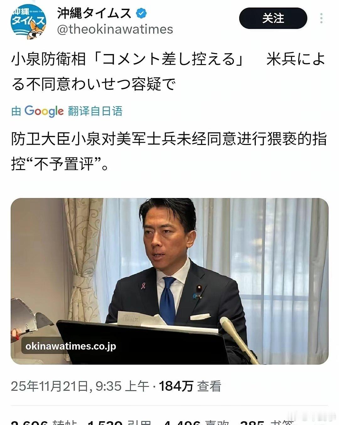 日本防卫相竟然对美国士兵19日强制猥亵琉球少女不置一词?