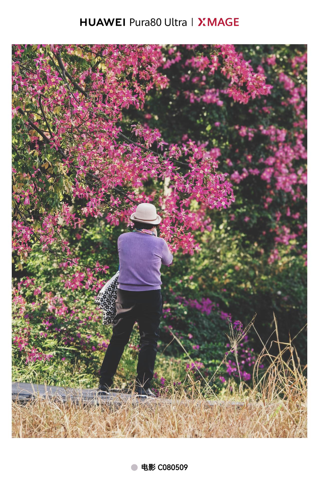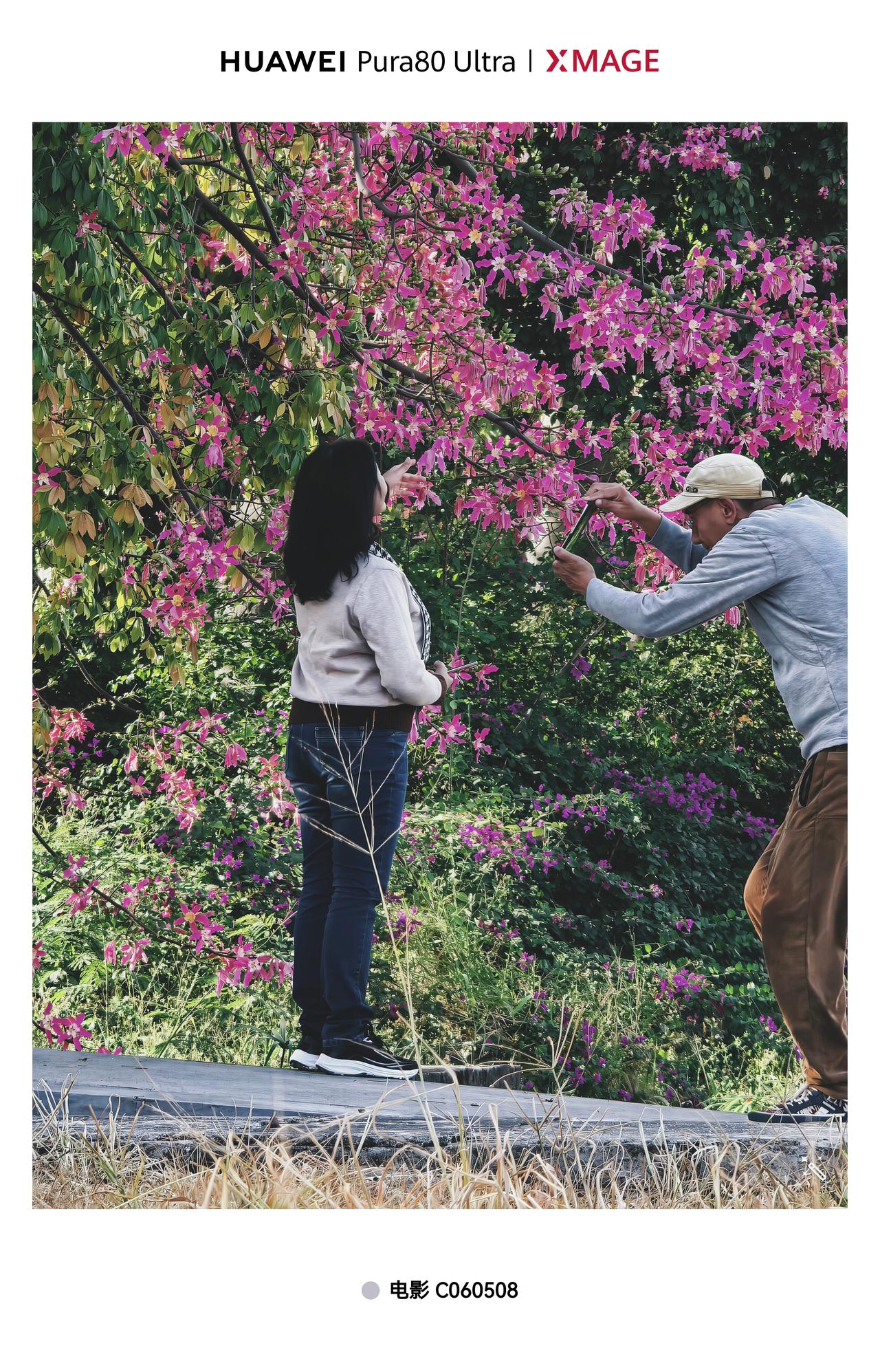 Pura 80 ultra一镜双目。 在木棉花盛开的观澜河湿地公园的季节,老奶奶都坐不住了,都出来看此景,真的太美了。你看夫妇俩,他老公还给老婆拍,多幸福温馨。华为Pura 80 ultra XMAGE 影像 电影 个性视频 出片。