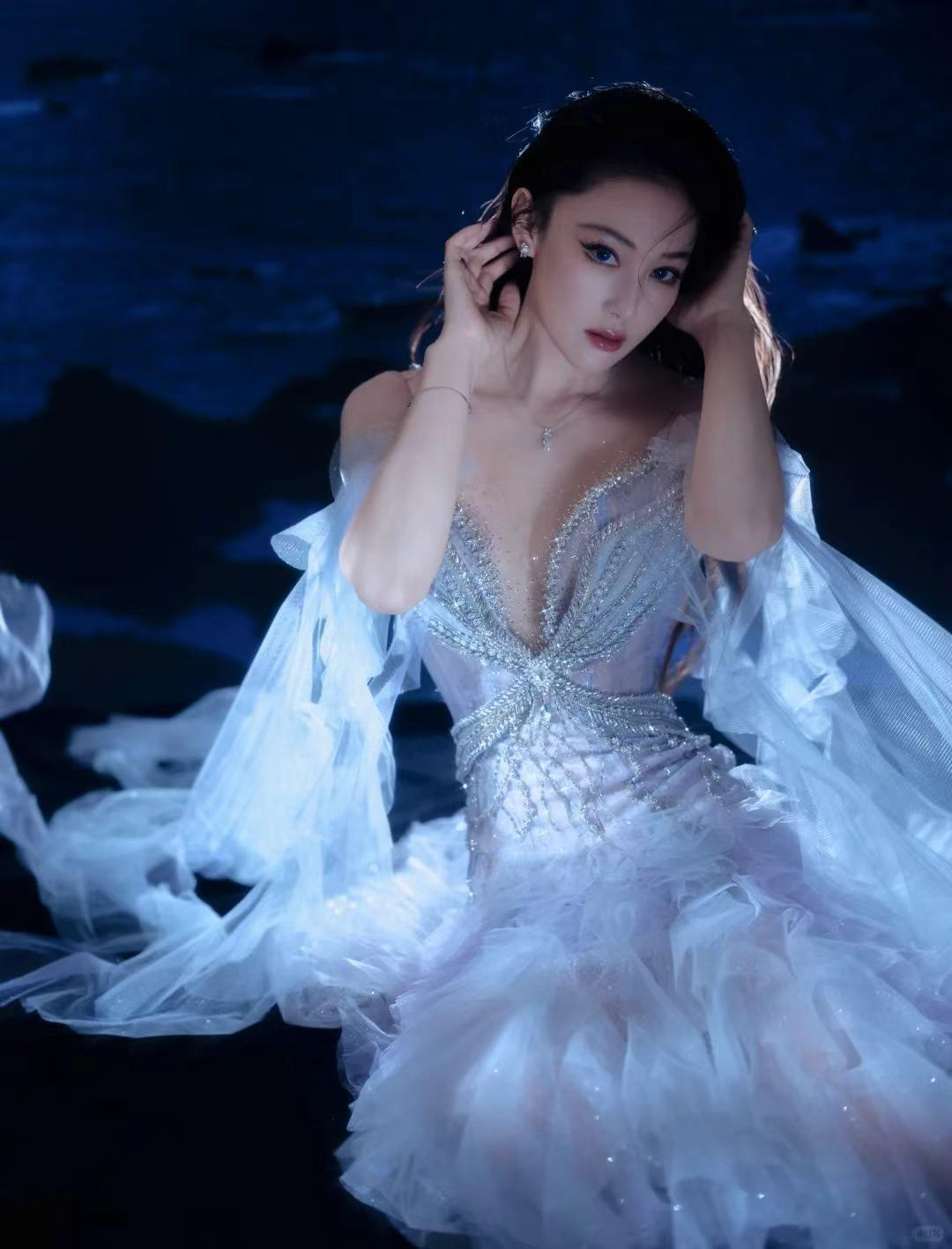张馨予自从嫁给了兵哥哥后,整个人一下就收起来了,少了锋芒,也少了曝光,少了争议。 但架不住底子硬,状态一点没垮,气场照样两米八,身材还是顶呱呱。只要她一露面,现场就跟打了光似的,现在娱乐圈这种“不鸣则已,一鸣惊人”的范儿可太稀缺了。 有人好奇,结了婚咋就换了活法?其实说白了,她不是放松了,是把劲儿使在暗处,把美商和自律都攒着,偶尔发组大片,那股子掌控力和高级感就全出来了。风格更内敛,更纯粹,但该炸场的时候,照样能炸。 这次夜海写真就是个例子。深V纱裙上身,又冷又欲,性感里带着股狠劲儿。摄影师追着光跑,画面才够味儿。她那一双蓝眼睛,深邃得像要把人吸进去,撩你一下又收回眼神,活脱脱暗夜里的掌灯人。这种张力,谁看了不迷糊?张馨予