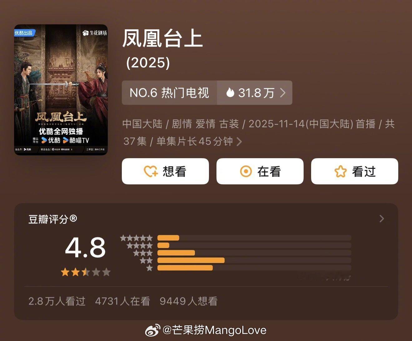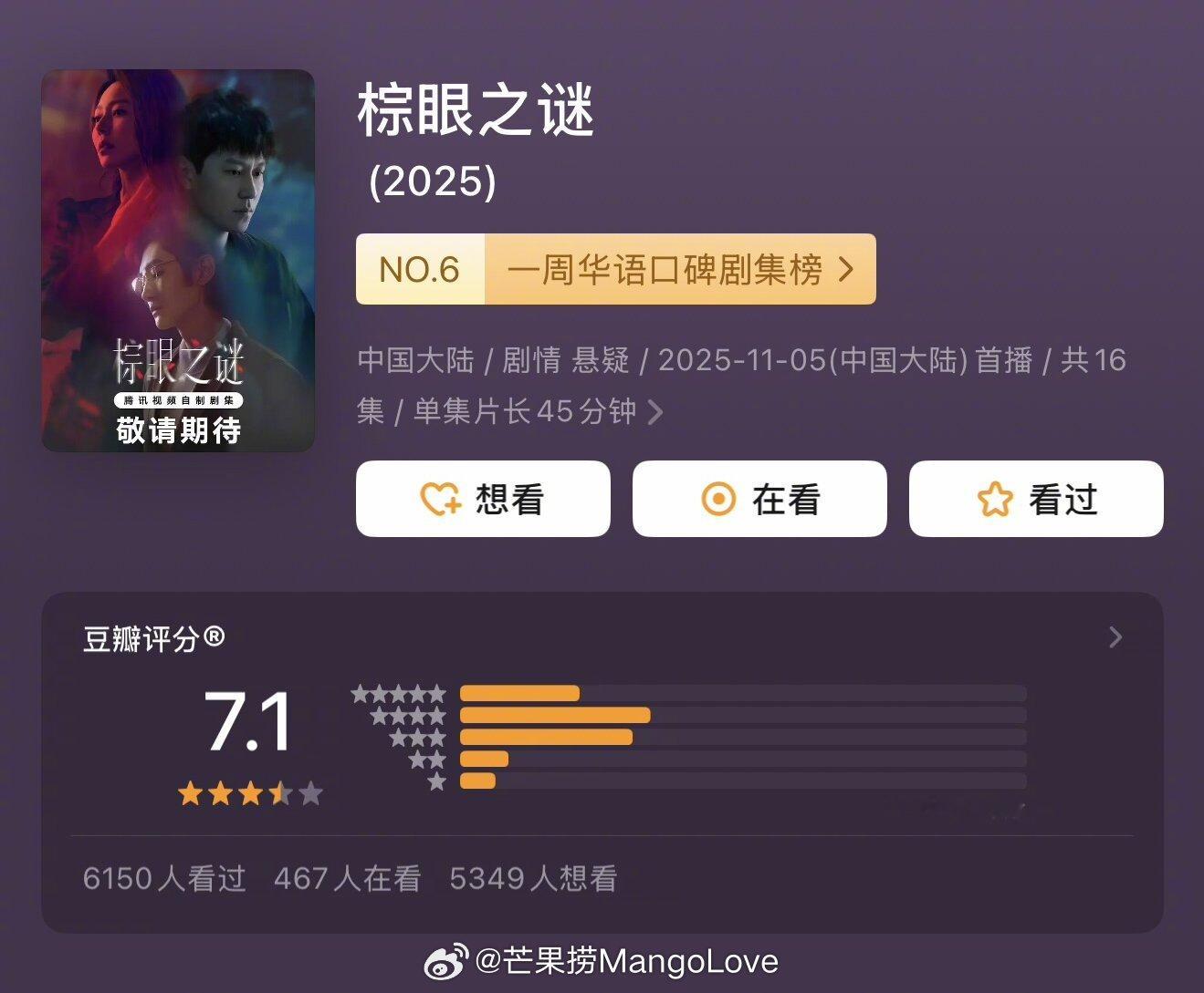 近期热播剧集豆瓣评分开分马天宇 / 谢兴阳 / 梁国荣 / 徐梦洁 / 曾宥臻 7.5分秦俊杰 / 黄梦莹 / 汪铎 7.1分任嘉伦 / 彭小苒 / 张耀 / 陈意涵 / 汪卓成 / 鹤男 / 刘梦芮 / 骆明劼 4.8分