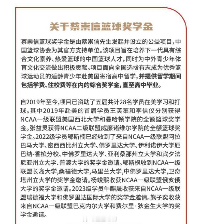 又一年蔡崇信篮球奖学金训练营结束,从2019级开始,过去五个年龄级,已经有28名