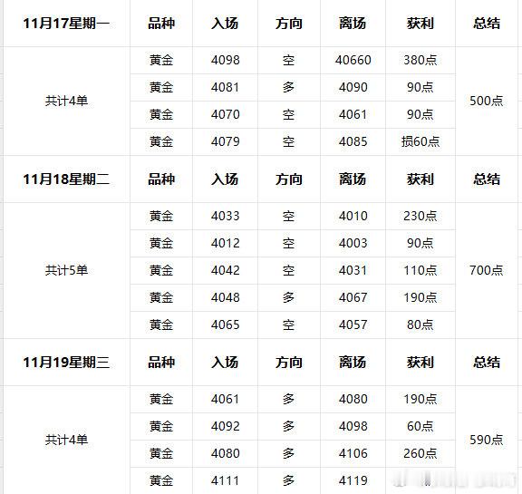 11月17日-11月21周复盘;上周的行情整体维持在4130-4000位置宽幅来回!行情走势空间明确,做多做空都有机会!明河精准分析跟紧趋势变动!七进七出疯狂收割!共计操作21单,拿下3080!精准的行情判断,来源于全面的消息掌握,精确的技术分析,不断的复盘研究规律、总结规律、利用规律,结合客观具体消息面所综合判断而来,盈利没有那么简单,每一条神策的背后,都需要明河付出很多努力!大家切行切珍惜!!