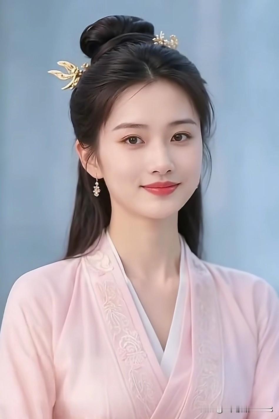 温柔古典美,粉衣美女,古风发饰,气质优雅。