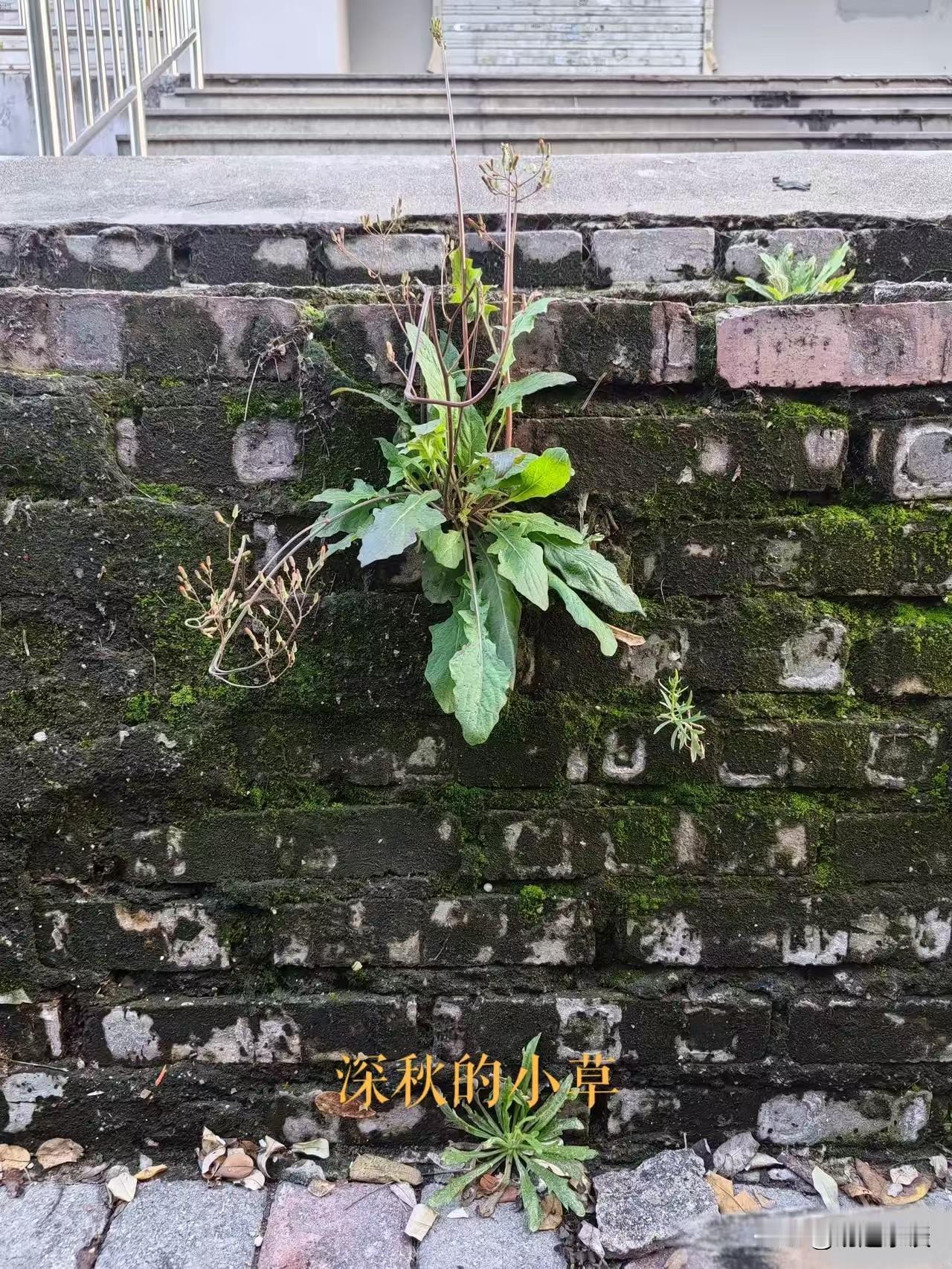 友友们还记得我发的那个深秋的小草吗? 现在已经供暖一周了,今天刚好是周末,好久没有晨练了,早上起来还是老路线,先由慢入快的走上两三百米,再慢跑一会,基本上跑累了就到我压腿的地方了,突然间眼前一亮,都这个时间段了,那个小草竟然又长大的很多,在砖缝中显的更加的挺拔。 很有感触,前一段时间还立誓减肥的我,已经很久没有出来锻炼了,我应该像这棵小草一样在这恶劣的环境下,依然坚持、坚持!秋天里的花草 冬日里我的花草