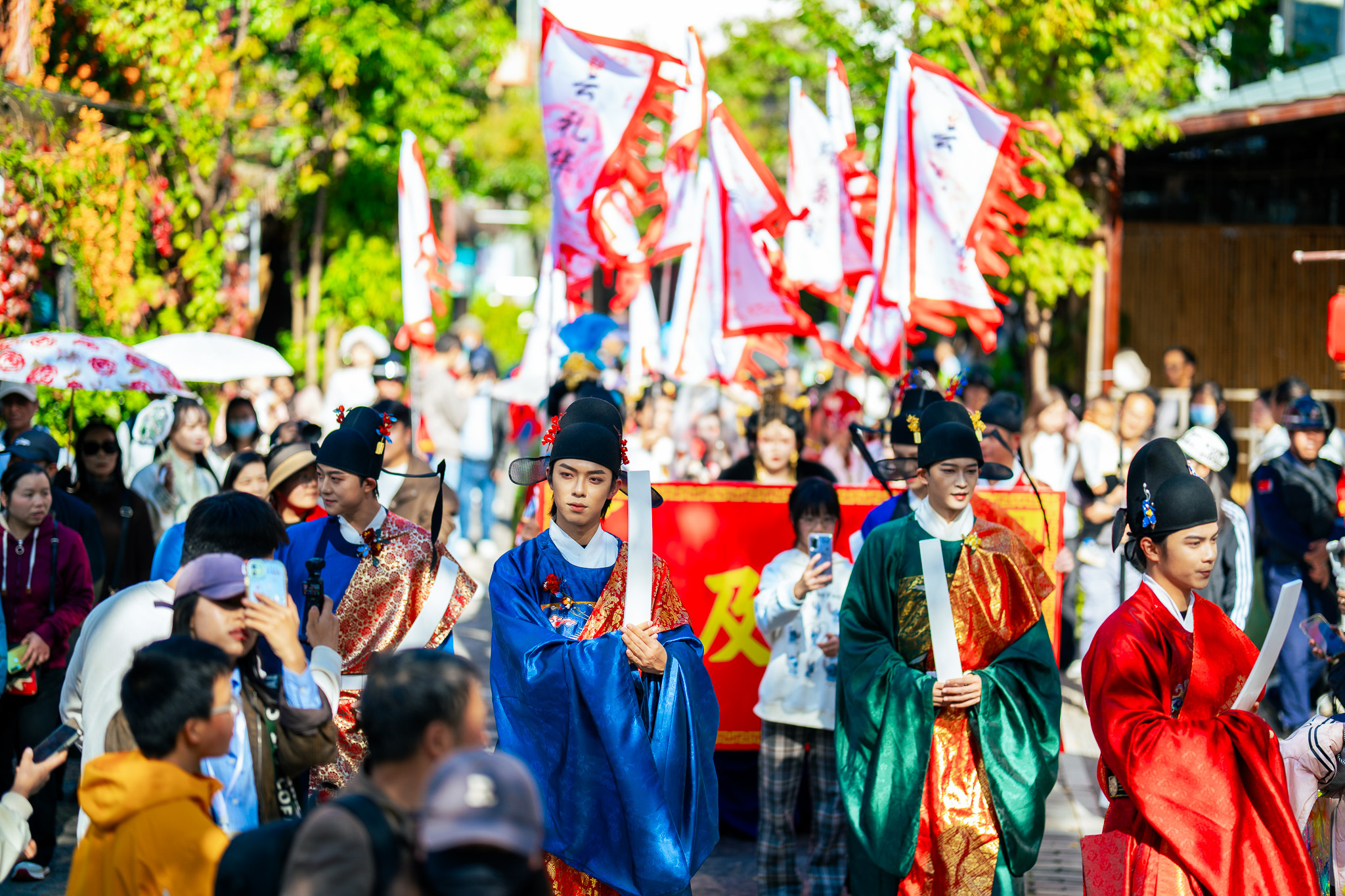 惊艳启幕!十六个朝代方阵穿梭古巷,沉浸式NPC带你一秒入戏,更有状元巡游、汉婚大