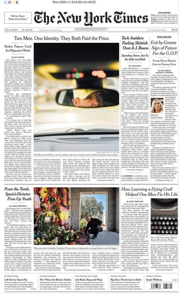 《纽约时报》头版报道称,美国科技业内人士对人工智能热潮感到不安 ,支出飙升,但债务和风险也在增加 。 将科技行业这段极度活跃的增长时期描述为一个历史性时刻并不过分。 制造人工智能所需芯片的英伟达上周表示,其季度利润跃升至近120亿美元,同比增长65%,较上一年同期增长245%。 10月下旬,英伟达成为首家市值达到3万亿美元的公开交易公司。微软、谷歌、苹果和亚马逊目前的估值也都在万亿美元级别。在最近一个季度,这四家公司的总营收超过300亿美元。 “关于人工智能泡沫已经有很多讨论,”英伟达高管黄仁勋在公司出色的季度财报发布后表示,“从我们的有利位置来看,我们看到了一些非常不同的情况。在所有这些泡沫般的繁荣背后,似乎有某种不祥之兆。 他们看着同样的快速增长和类似的资金涌入,就像黄仁勋看到的那样,看到了一座纸牌屋。他们说很难知道如果它崩溃会造成什么样的破坏。” 英伟达股价在华尔街的反弹只持续了几个小时,之后就回吐了涨幅。标准普尔500指数在11月1日几乎持平。 英伟达的崛起让芯片制造商们黯然失色,它的光芒甚至盖过了英特尔。过度被资本追捧也是存在泡沫风险。