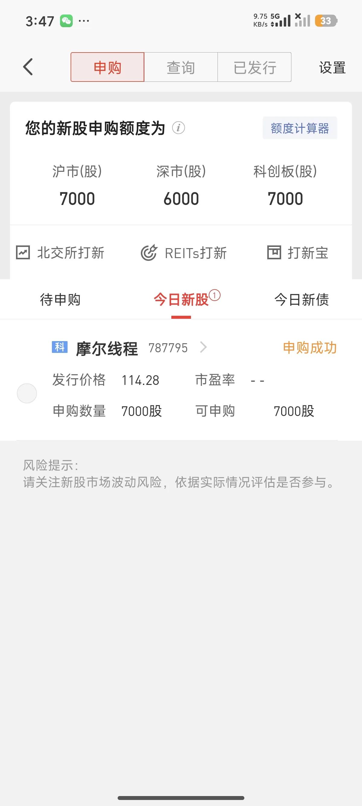 摩尔线程开始申购了,这可是国产GPU第一股,我得去碰碰运气。这次它发行7000万股,发行价114.28元,是今年新股里最高的,中一签要缴57140元,网上申购上限11000股,顶格申购得配11万沪市市值。发行后总市值能到537亿。 募集的钱会投入芯片研发等项目。不过它也提醒,发行价对应的2024年摊薄后静态市销率高于同行,股价可能下跌。和英伟达、AMD等比,国内GPU厂商还得努力突围。就看我能不能幸运中签啦! 摩尔线程