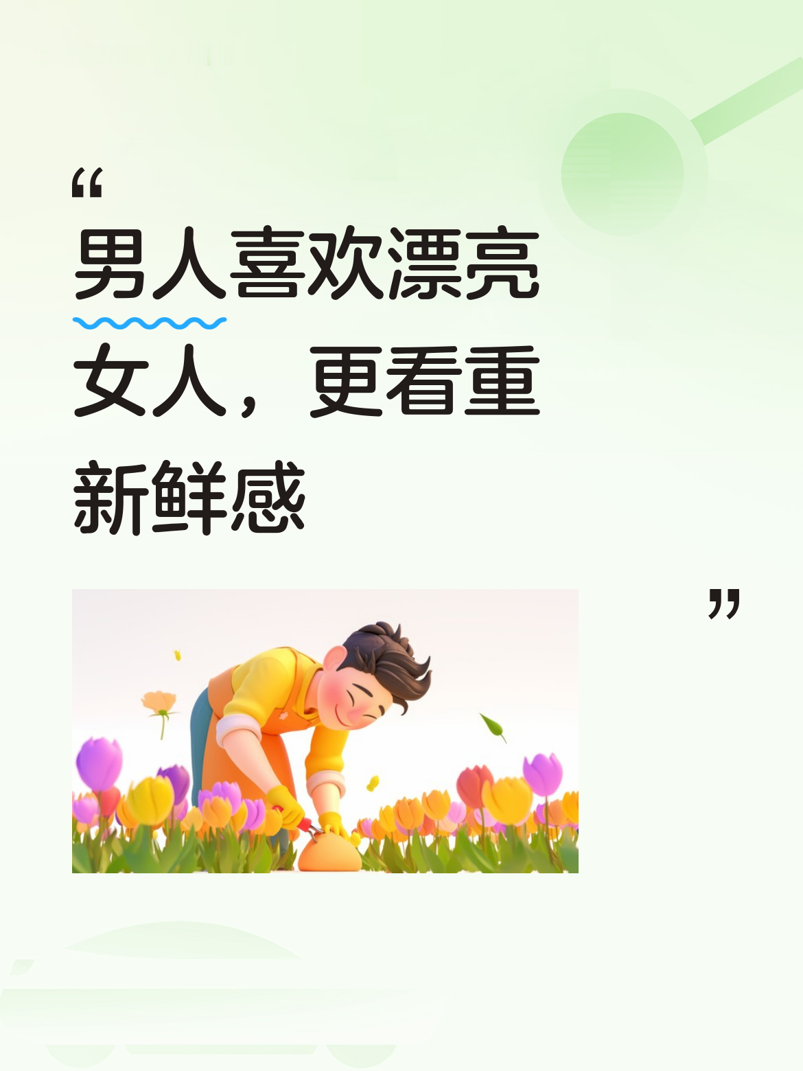 男人呀,除了对漂亮女人毫无抵抗力,在感情里,最重要的其实是要有新鲜感呢...