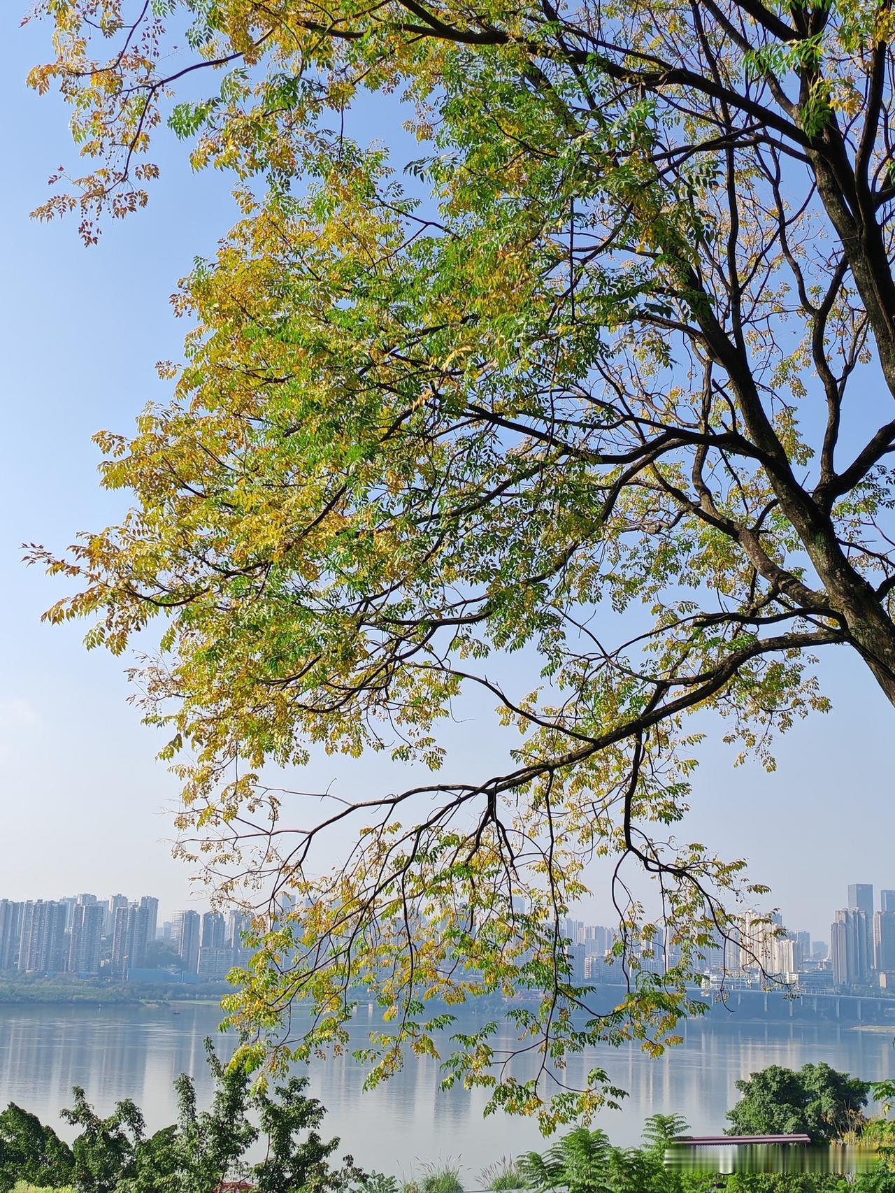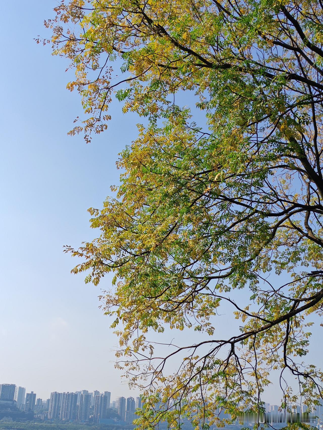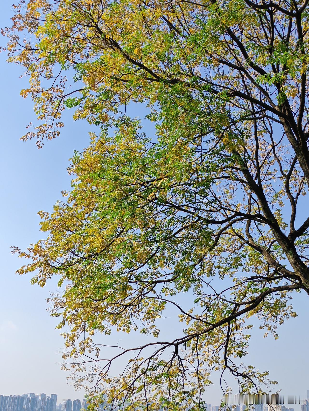 重庆的初冬,苦楝树叶那一抹黄,着实令人难忘。 前些日子路过南滨路大鱼海棠公园,只见地上铺满了白色果实。我起初以为是无患子,后来才晓得是苦楝子,且这苦楝子还有小毒呢。上网一查才发现,好家伙,不要小瞧了苦楝树,它浑身是宝,果实、种子、树皮和叶片皆可入药,种子提取物在医药和杀虫剂领域均有应用,市场需求还颇为可观。 再瞧瞧那苦楝树叶,已然开始泛黄,为重庆的初冬增添了别样的色彩。