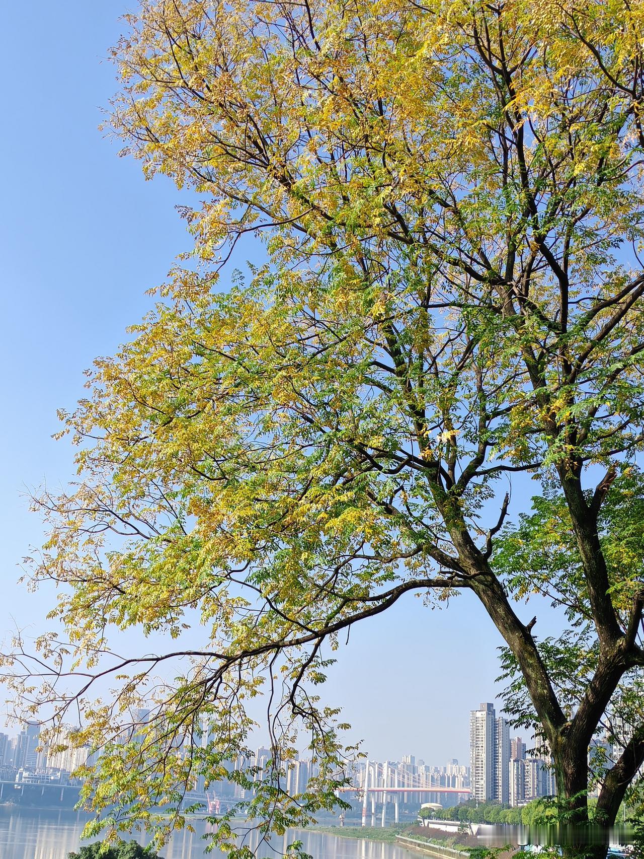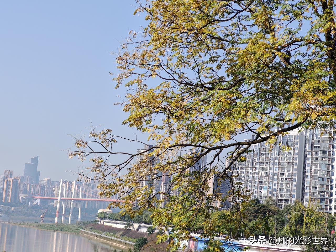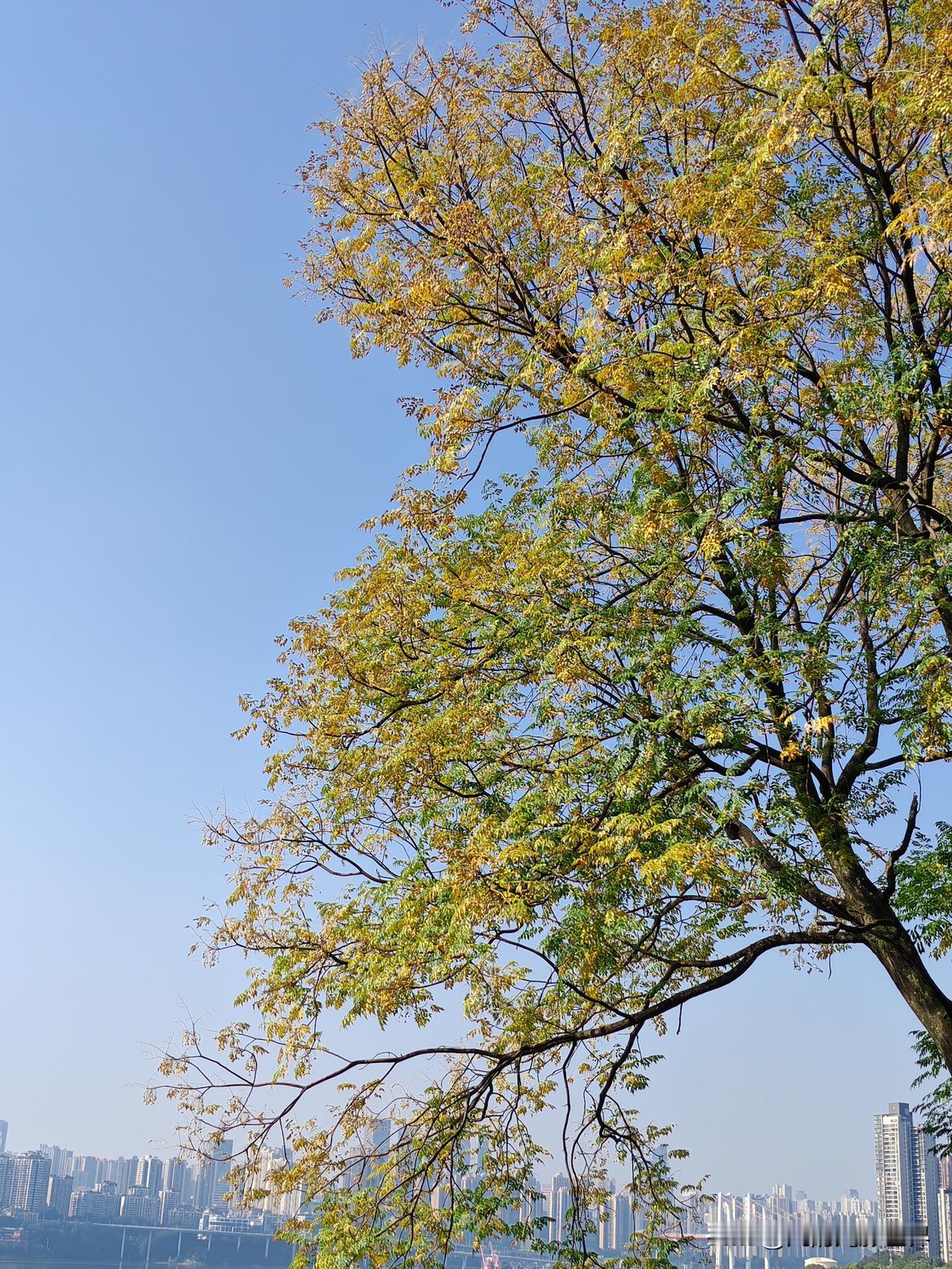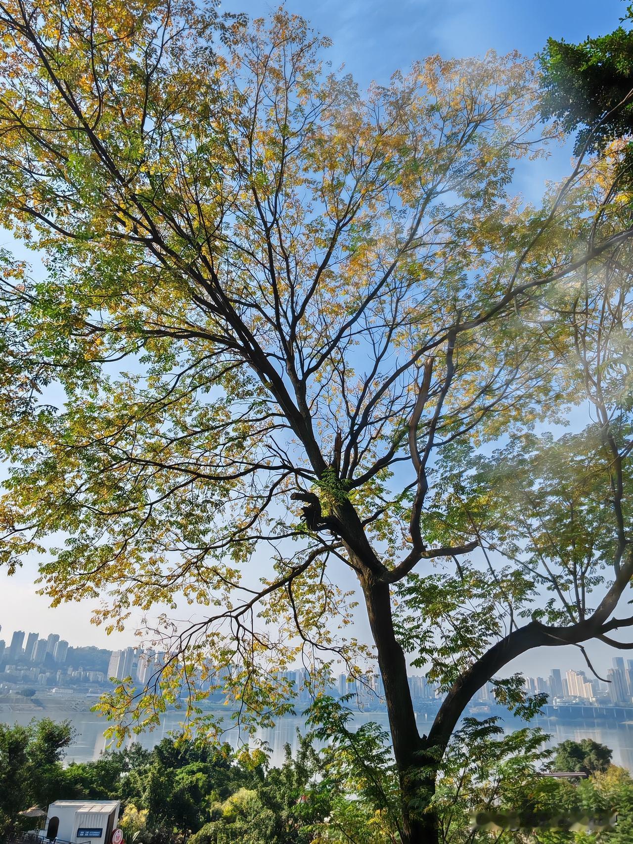 重庆的初冬,苦楝树叶那一抹黄,着实令人难忘。 前些日子路过南滨路大鱼海棠公园,只见地上铺满了白色果实。我起初以为是无患子,后来才晓得是苦楝子,且这苦楝子还有小毒呢。上网一查才发现,好家伙,不要小瞧了苦楝树,它浑身是宝,果实、种子、树皮和叶片皆可入药,种子提取物在医药和杀虫剂领域均有应用,市场需求还颇为可观。 再瞧瞧那苦楝树叶,已然开始泛黄,为重庆的初冬增添了别样的色彩。