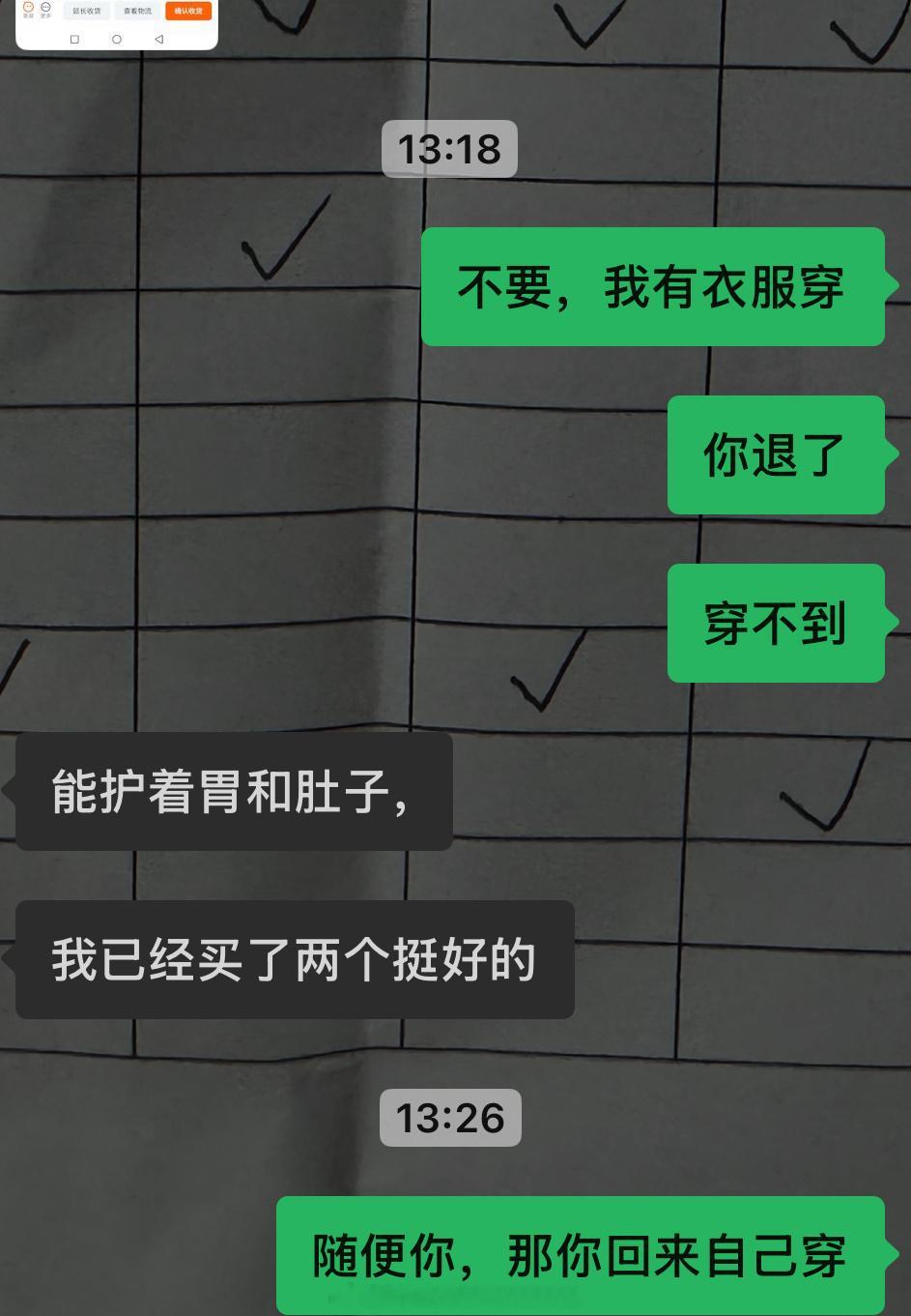 互相伤害谁不会之前开开心心买了个护腰按摩仪,收到之后拆都没拆先说不要,直接一盆冷水浇我头上哄了半天拆开试试呗,不喜欢就退了,人家嫌麻烦就是不拆我说那退了,不要了人家又哼哼唧唧没让退6轮到你了。我也不要每次都要这样说不好听的话,行