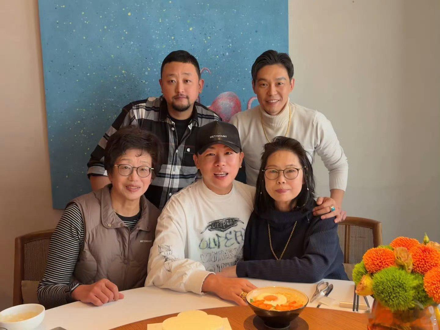胡彦斌发文为妈妈庆生,妈妈穿黑高领配链条项链,戴着眼镜笑起来好温柔