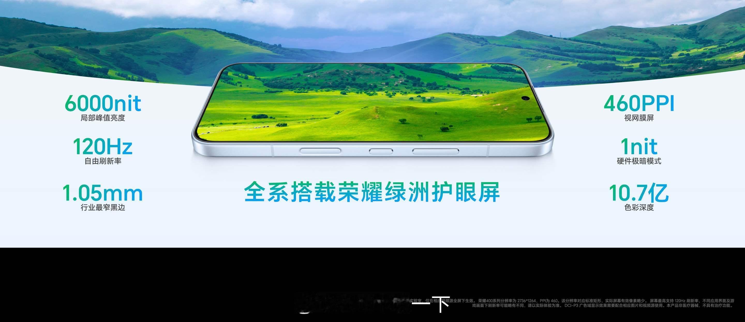 荣耀500全系搭载绿洲护眼屏,支持包括照明闪烁检测、AI视觉健康管理、AI动态离焦等九大荣耀绿洲护眼特性。