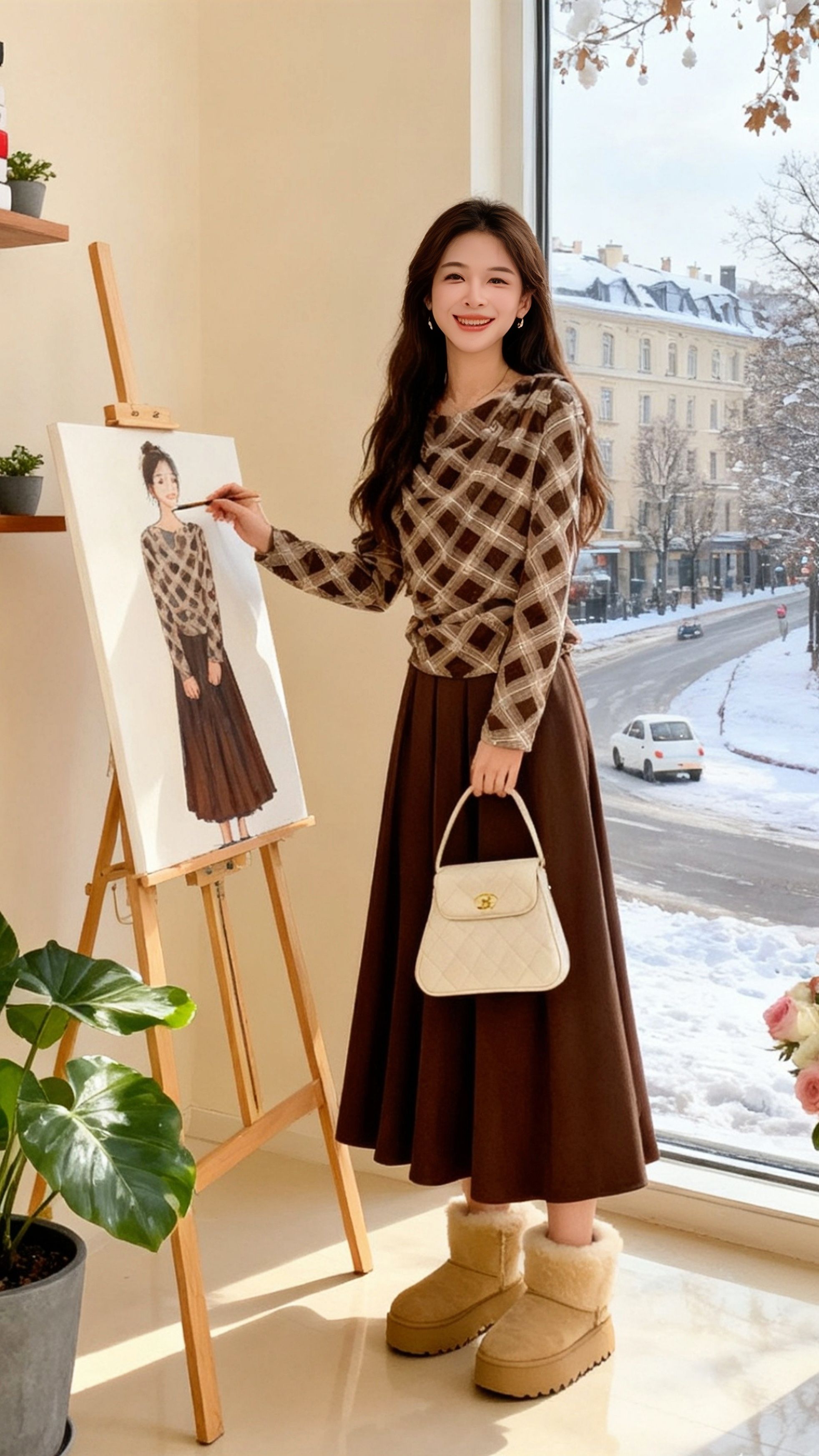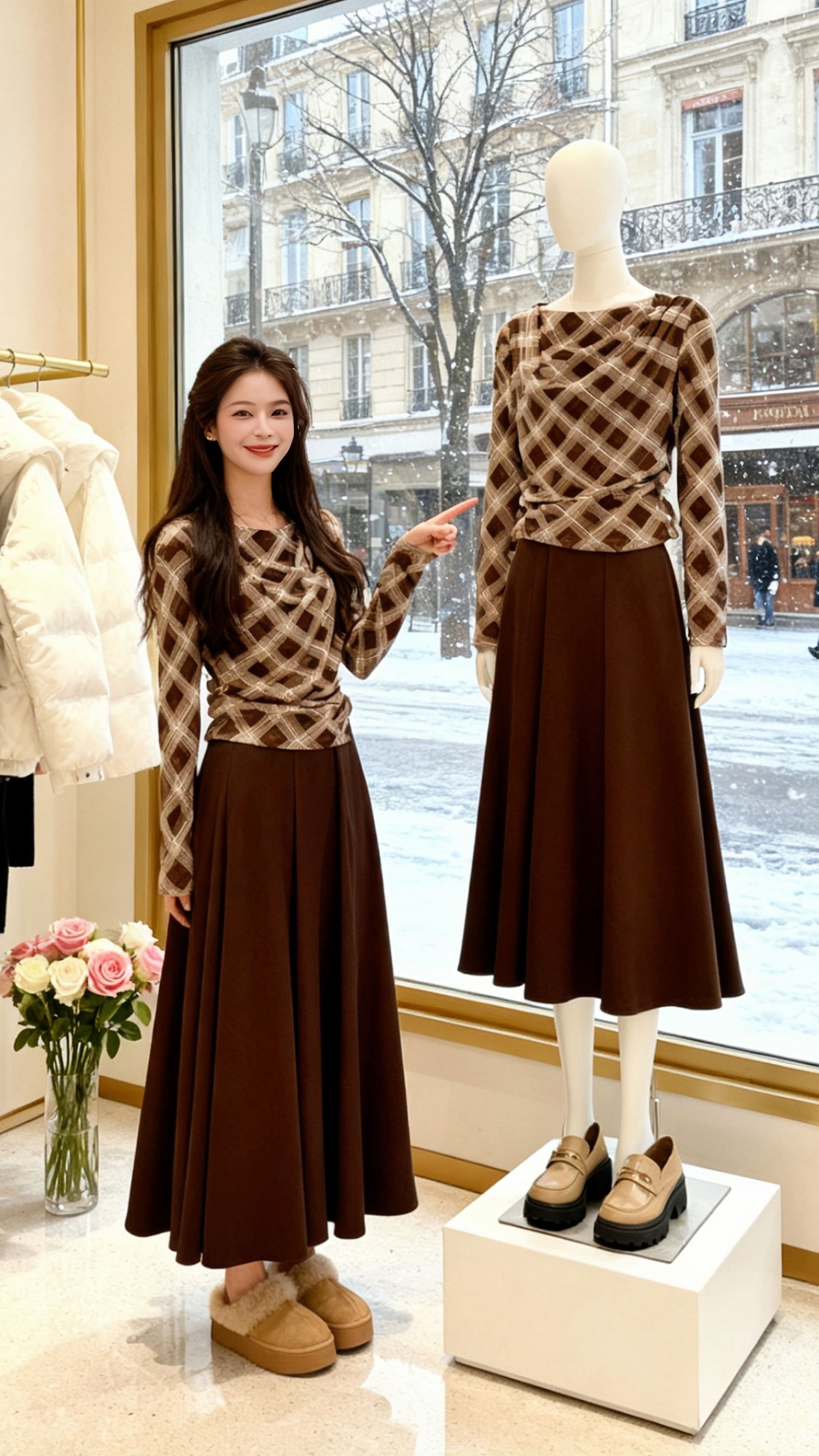 设计感格纹撞色套装裙女2025春秋新款名媛风优雅气质半身裙两件套