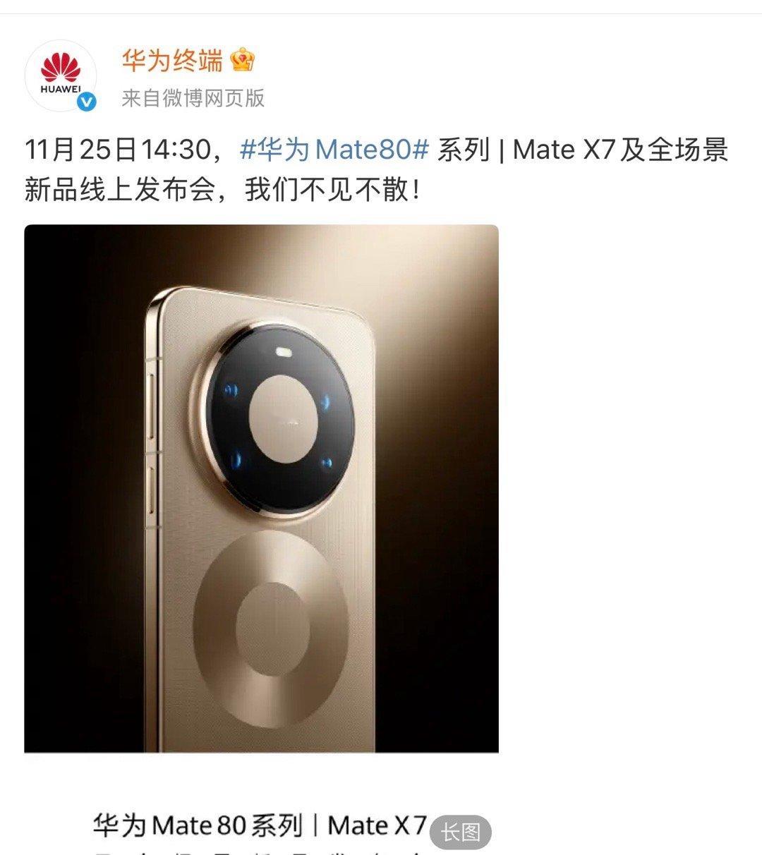 【:最强Mate机皇】华为终端官宣将于11月25日举行华为Mate80系列/M