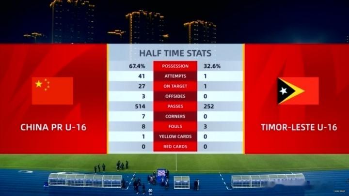 2分钟1脚!U16国足狂轰41脚射门打进14球,东帝汶U16全场1射门