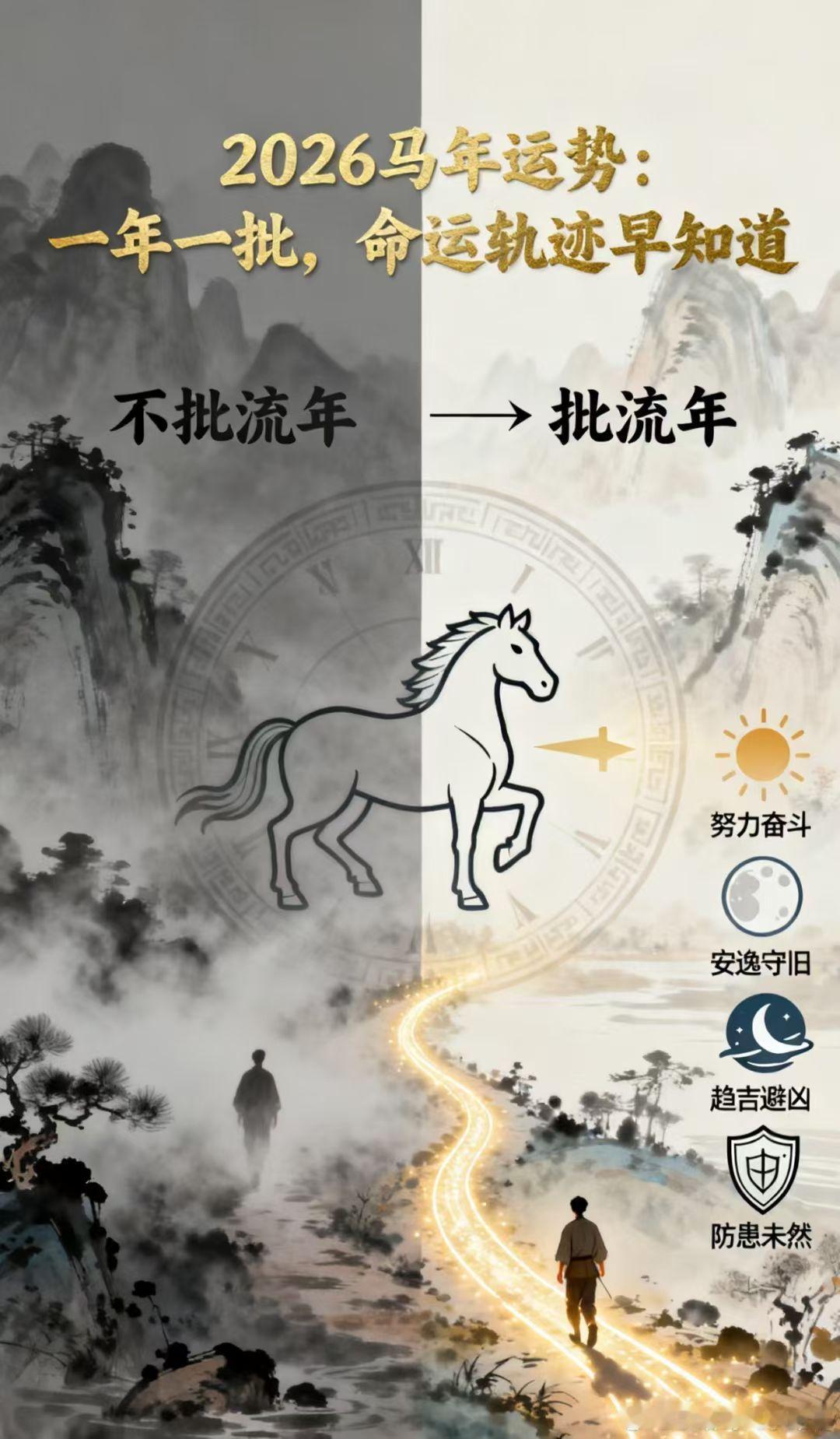 2026年丙午年生肖马年想要让自己的运势顺风顺水,春风得意,那么必须要了解自身的运势在哪一个时间点,自己做什么样的事情才能够顺风顺水,那么自己做起事情来才能够风生水起。现在正是看2026年一年运势的最佳时机,做好人生的规划,在新的一年做起事情来就不再迷茫,