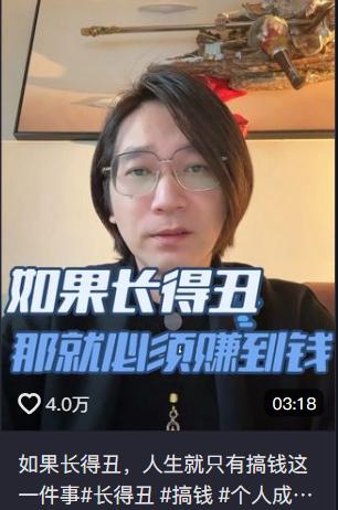 有个大V说: 如果你长得丑,那这辈子最重要的事就是搞钱。 因为长得丑,基本上没人会真心喜欢你。 所以,必须玩命搞钱,管住身材,穿对衣服,疯狂学习,别玻璃心,拼出一条自己的路。 要是长得丑还躺平,不捯饬也不努力,那真就完犊子了。 话糙理不糙,说得还怪有道理的。 现在这个社会,不是看钱,就是看脸,要是这两样都没有,那就要活得艰难很多。 不过,我觉得吧, 长相是爹妈给的,活出啥样子却是自己挣的。 我们可以把钱当作工具,但千万别当成目的。 我们可以把外貌当作起点,但千万别当作终点。 我见过很多相貌平平的人,夫妻恩爱,儿孙绕膝。 他们的幸福不是靠钱买来的,是靠几十年如一日的体贴、负责和包容换来的。