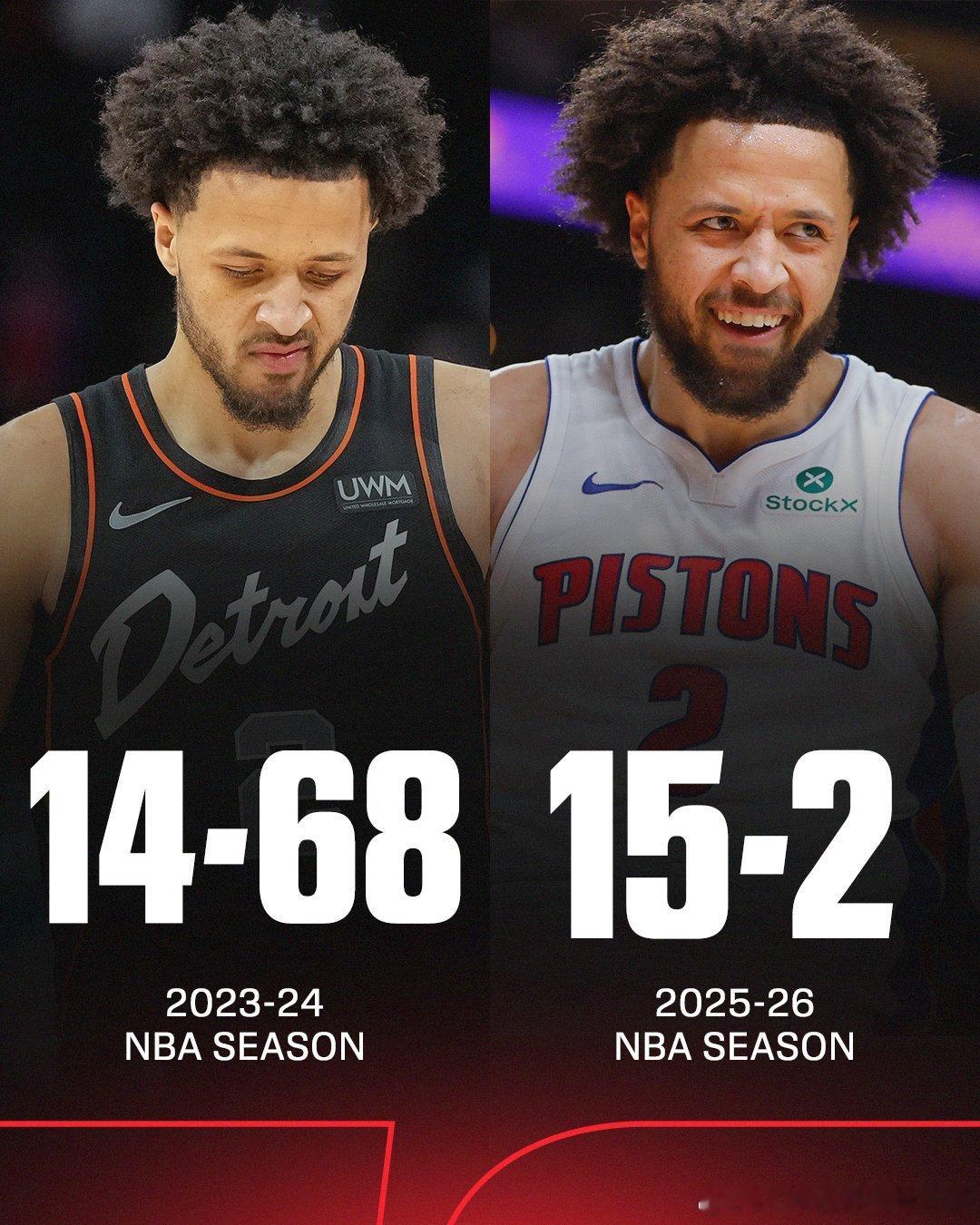 底特律取得13连胜🔥活塞队目前保持着联盟最长的连胜纪录,稳居东部榜首,这与两年前的情况相比,简直是天翻地覆的变化🫡