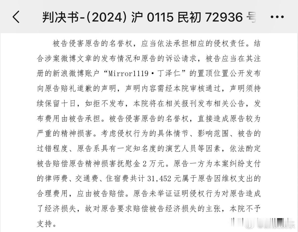 【唯一的姐公开与丁泽仁判决书 丁泽仁唯一的姐道歉】 近日,丁泽仁与粉丝“唯一的姐”之间的纠纷再度引发热议。22日,丁泽仁通过社交平台否认“唯一的姐”曾为他花费300万元,并要求对方公开道歉。随后,这位粉丝在微博发布道歉声明,并公开了与丁泽仁的判决书,将事件推向高潮。 判决书显示,粉丝在微博中提到的“丁泽仁在恋爱期间出轨其他女性、私生活混乱、隐瞒已有女友的身份、在酒店发生性行为、上门服务滥交之人”等内容,法院认定具有基本的事实依据,并非捏造或歪曲事实。然而,诸如“舔狗”、“全裸出去都会喜滋滋”等表述,因缺乏事实依据且带有明显的人格贬义,法院认定其侵害了丁泽仁的名誉权。最终,法院判决该粉丝公开道歉,并赔偿丁泽仁精神损害抚慰金2万元。 事件起因于2022年,这位自称“唯一的姐”的粉丝在微博爆料,称自己曾为丁泽仁花费巨额资金,并指责其私生活混乱。丁泽仁随后否认相关指控,并将对方告上法庭。经过审理,法院部分支持了丁泽仁的诉求,但也确认了部分爆料的真实性。 这场纠纷不仅让丁泽仁的私生活成为公众焦点,也引发了关于粉丝与偶像之间关系的讨论。有网友认为,粉丝过度投入偶像生活,最终可能导致双方关系破裂;也有人指出,偶像作为公众人物,应更加注重自身言行,避免给粉丝带来负面影响。 目前,丁泽仁尚未对判决书内容作出进一步回应,而“唯一的姐”的道歉声明则引发了新一轮的舆论热议。这场风波究竟会如何收场,仍有待观察。 丁仁仁 (来源:网络综合)