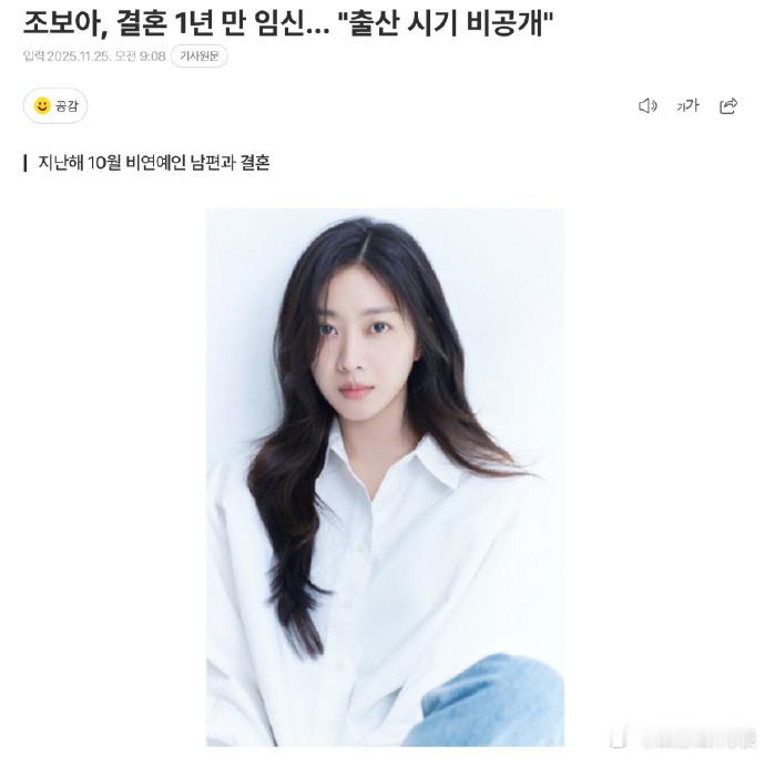 据韩媒,演员曹宝儿(34岁)婚后1年怀孕,预计在产后恢复演艺活动。此前曹宝儿于去年10月与交往多年的男友完婚。