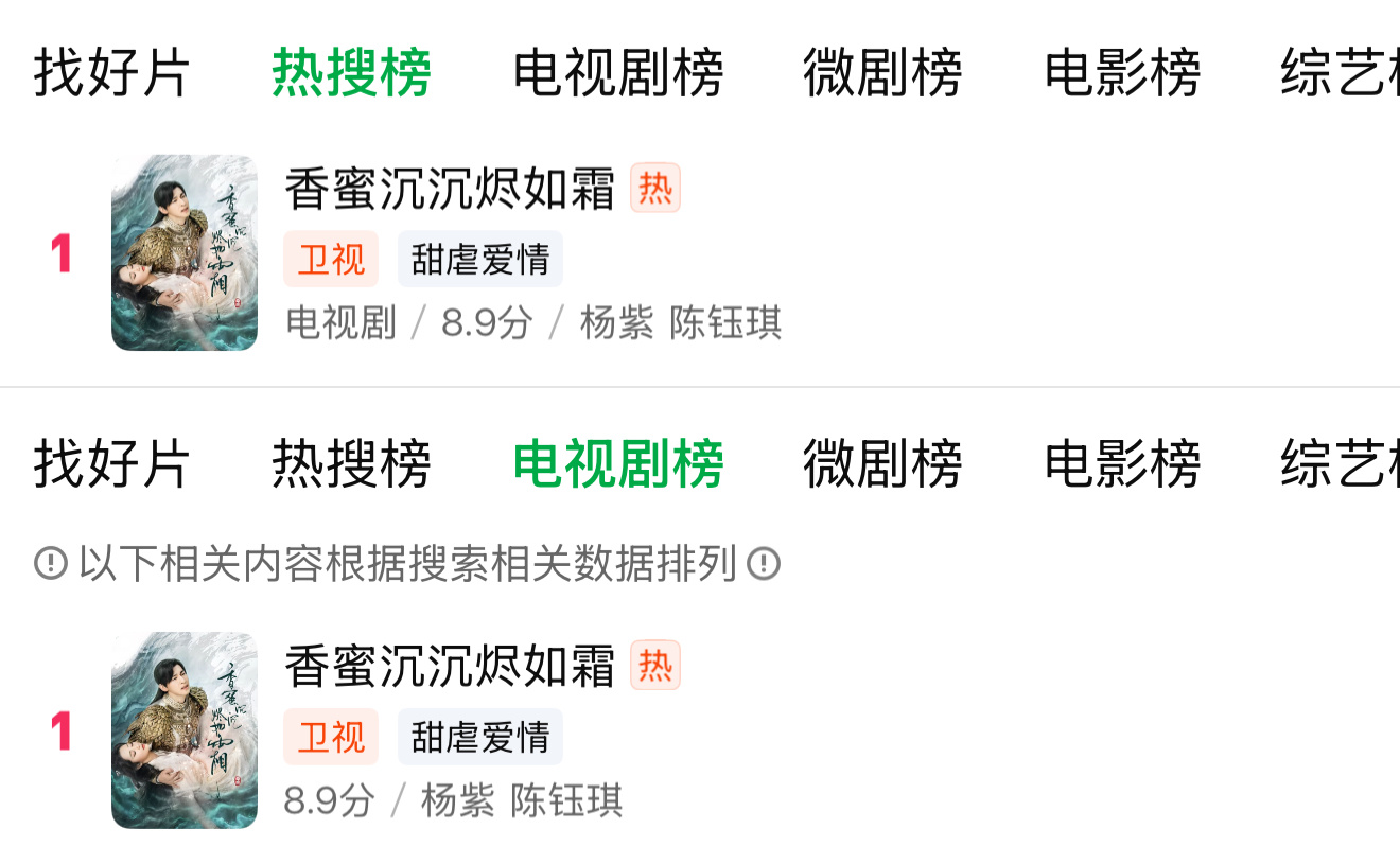 有的人播剧才3天云合就低位横盘,而我们小紫紫七年前的大爆剧香蜜空降云合榜单,🥝双榜登顶