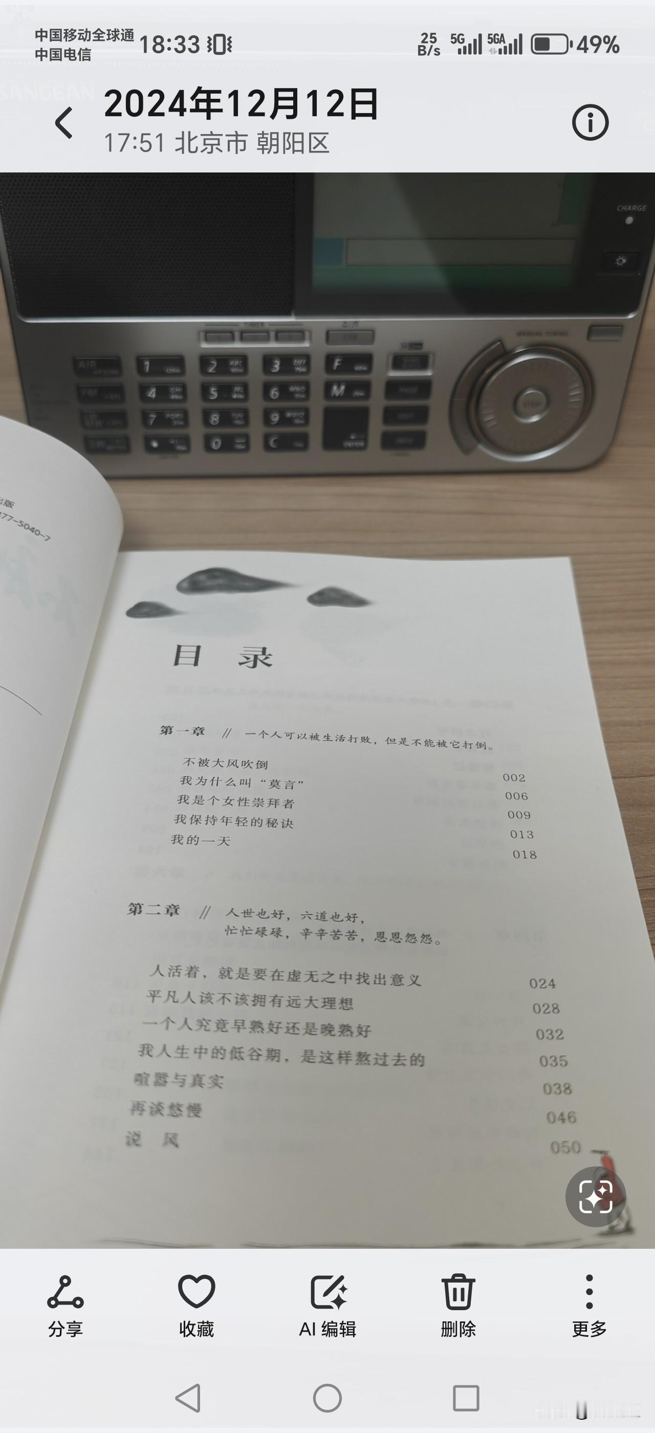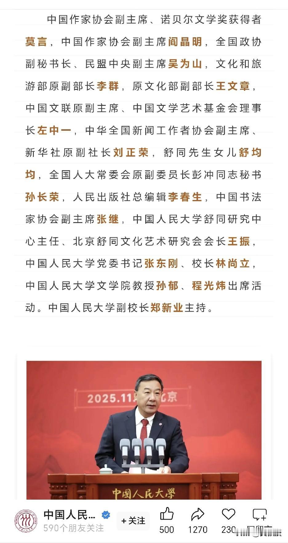 这几年,我买书不多 是因为很多出版社知道我爱看书,经常给我赠书,让我说说读后感[呲牙] 所以家里的书越来越多,接近万本,好几个墙的书柜都堆满了。但是莫言的书只要出版,我肯定购买。也不想他们赠我,只是表达一种支持。支持的是一种开放包容的状态,支持的是改革开放以来的大好局面,我们不能让民粹破坏了发展的大局,这应该成为一种常识。中国人民大学聘莫言为兼职教授,高朋满座,这是一个好消息。