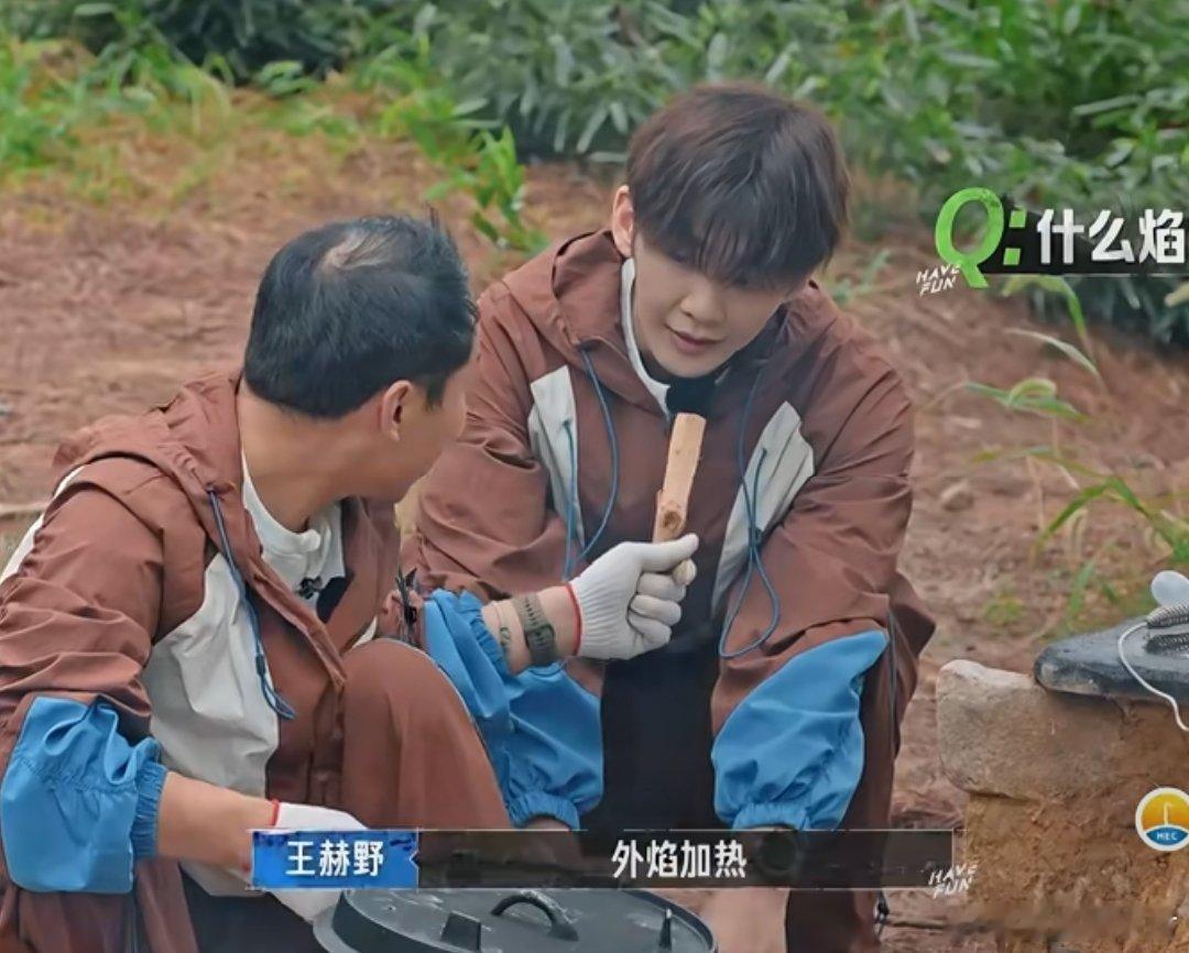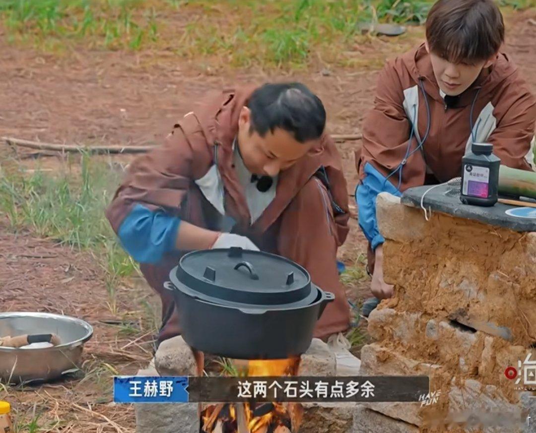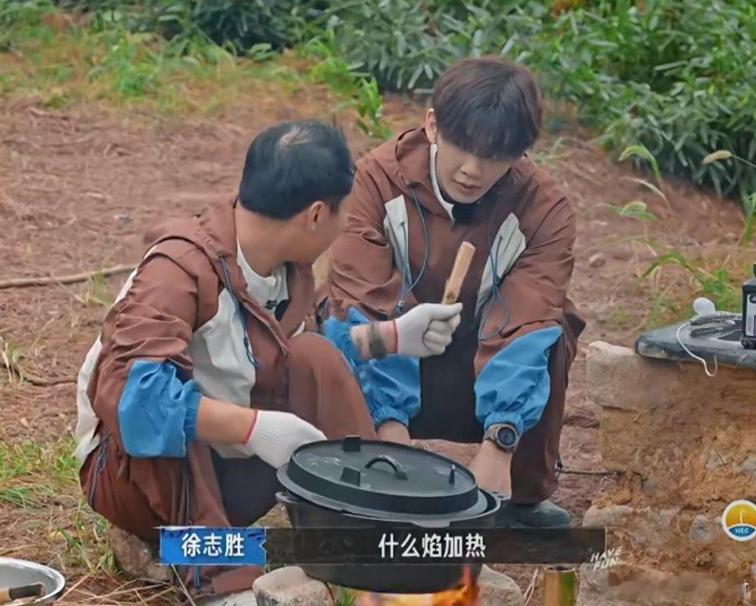 综艺《嗨放派》徐志胜王赫野搭石头烧火,回忆起了“外焰加热”的知识点~