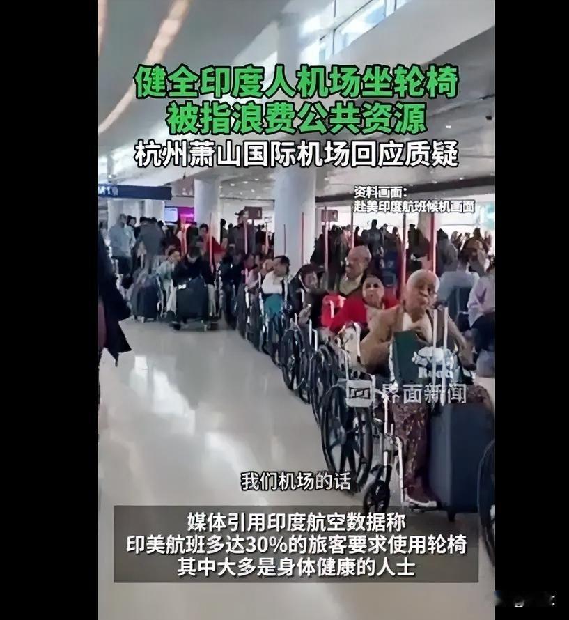 杭州萧山机场,众多印度人坐轮椅排队,之前在网上看过,有些印度人坐轮椅排队登机,没想到真的发生在国内机场。有人说,这些印度人是不是坐轮椅排队登机,是不是为了优先登机享受特殊服务?这不是精致的利己主义吗? 更让人无语的是,这根本不是杭州独有的情况,而是国际航空圈的“老毛病”——印美航线30%的乘客都会申请轮椅服务,美国纽瓦克机场90%的轮椅服务都给了印度航班。可他们占的便宜,代价全由真正有需要的人承担:有拄拐杖的中国老人预约了轮椅,却因为被“蹭客”占满而等了四十分钟;还有脊髓损伤的旅客,差点因为轮椅被挪用赶不上航班。地勤人员也苦不堪言,本该贴心的服务变成了无休止的体力活,真正行动不便的人反而排不上号。 如果这种现象成为普遍现象,会浪费公共资源,会占用真正需要帮助的人的特殊服务。大规模的这种行为,会让人对印度这个国家,和印度这个民族,有新的认识。 你们在机场遇见过这种“钻空子”的操作吗?觉得该怎么加强审核,才能不让特殊服务被滥用?来评论区说说你的妙招~