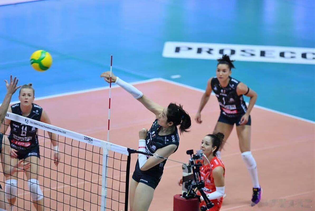 25-26赛季女排欧冠首轮比赛,身处D组的科内利亚诺主场迎战本组最强对手泽仁体育,科内两度大比分落后又两度追平,决胜局更是在11:14落后的局面下连追3个赛点,最终以3:2(23:25,26:24,23:25,25:22,20:18)惊险取胜。本场比赛朱婷上场时间一局半得到6分,哈克和加比各得到29分和21分。