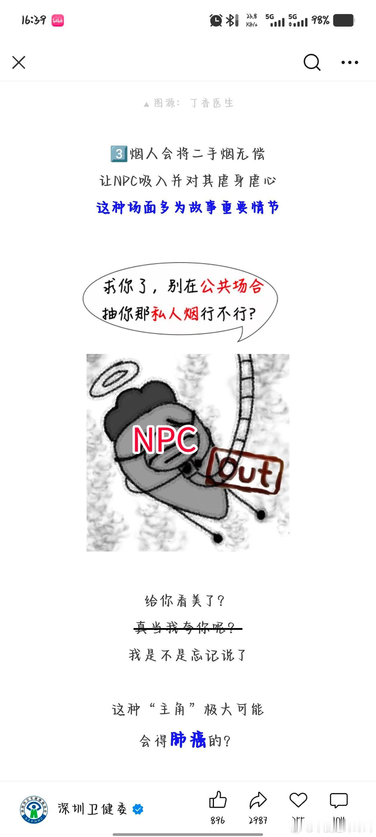 抽烟这块深圳卫健委越骂越勇在禁烟和控烟之间,选择了骂烟民。深圳卫健委除了写小作文