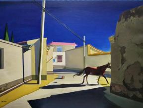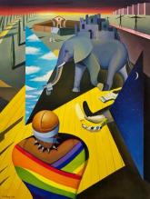 无边旷野上,巨大的未知生物体似乎也要沉沉睡去。 空旷无人的午后,怪异的光线,脱缰的野马,丢失的皮球,像是梦境中神秘的小镇。 扭曲的线条与奇异的色彩,暗示着进步背后的代价。它昭示着人类在改造世界时,也不可避免地改变自身,胜利的欢腾中潜藏着存在的虚无,是对抗与共生的永恒悖论。 末日般的黄昏下,上演的是诱惑,是抵制,是罪恶,是嗜欲者的审判,也是无知者的趋之若鹜。 青岛市雕塑馆“山水相连·丹青铸魂—北京林业大学艺术作品展”之张运辉作品赏析 展览时间:2025年11月1日-2025年12月7日 展览地点:青岛市崂山区东海东路66号 青岛市雕塑馆 免费开放,敬请观展。